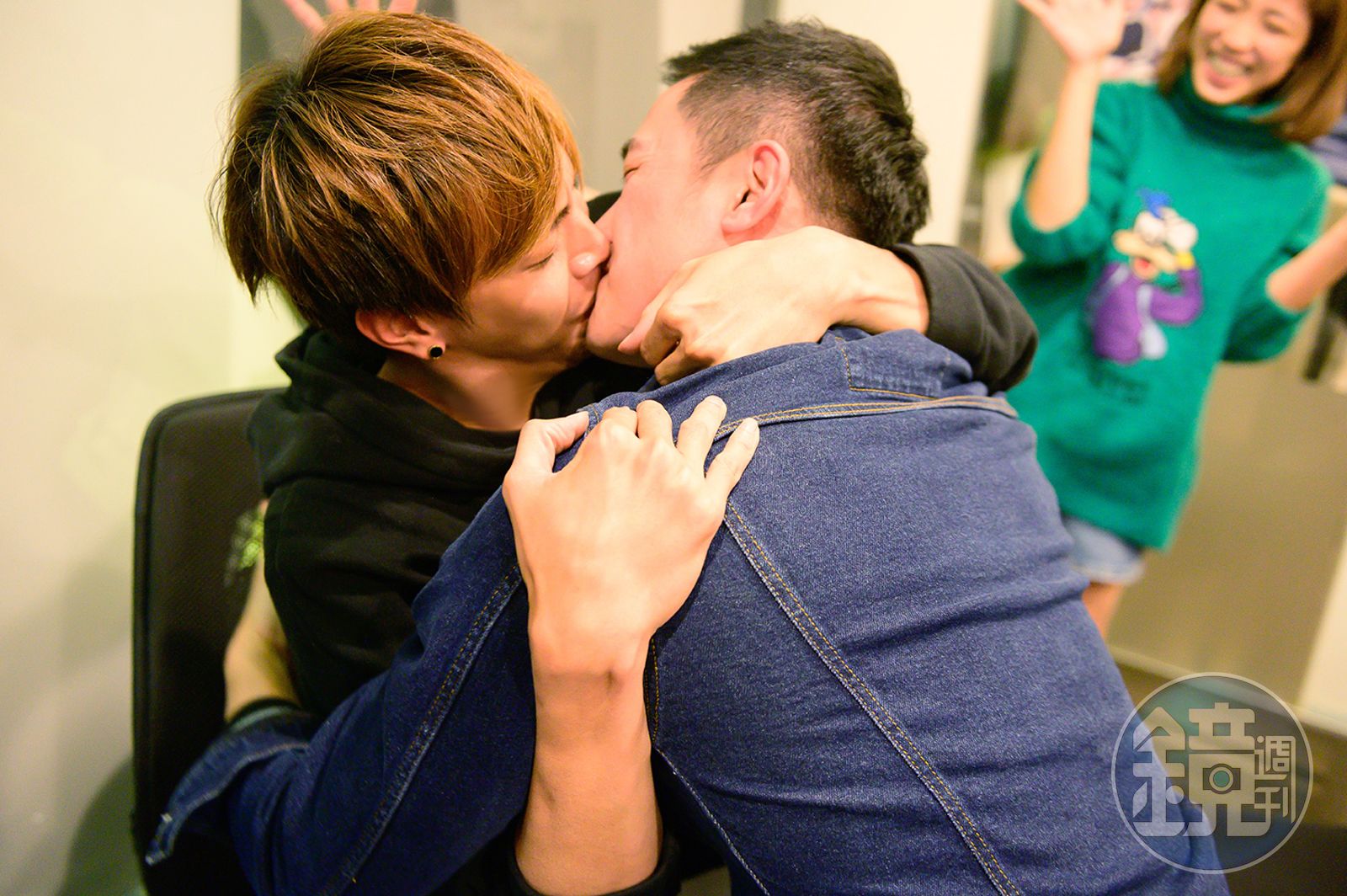 鯰魚哥激吻梁瀚名,引爆粉絲震動。(Tvbs提供)