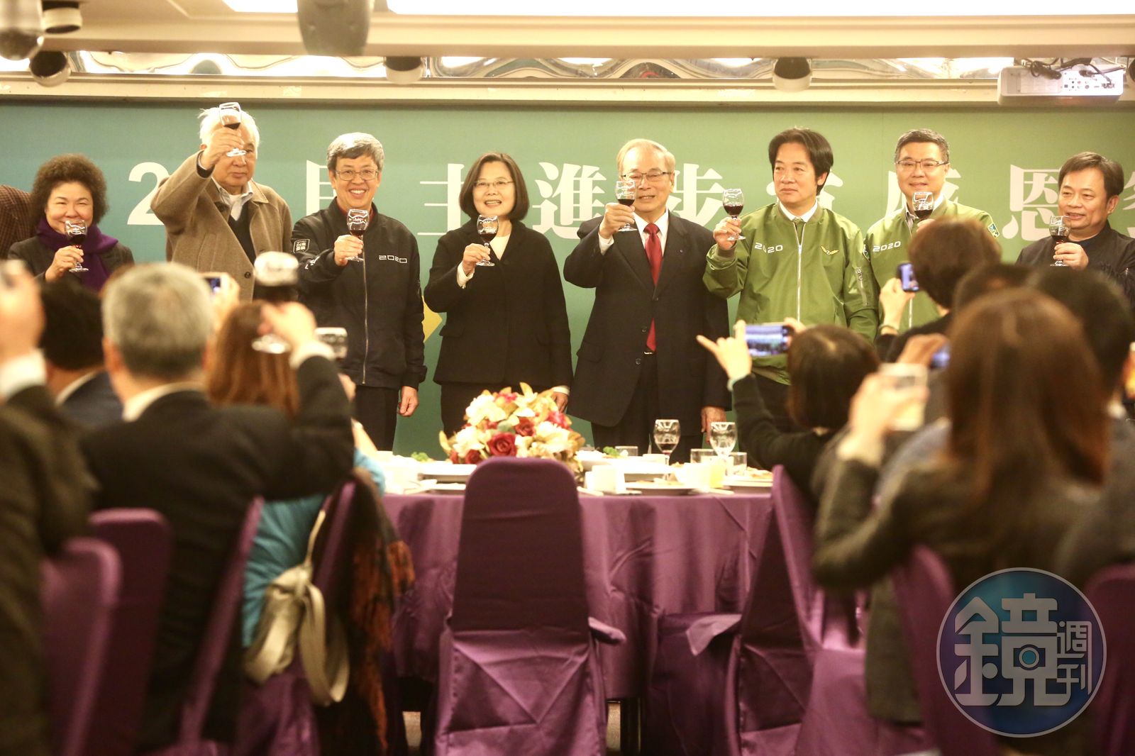 接著上台致辭的賴清德則勉勵黨工:「紀錄是要拿來破的,要有這樣的決心與抱負!」副總統陳建仁則說,美好的一仗已經打過,要繼續開創更美好的未來。今天這場餐會包括總統府祕書長陳菊、前行政院長游錫堃等人都與會。
