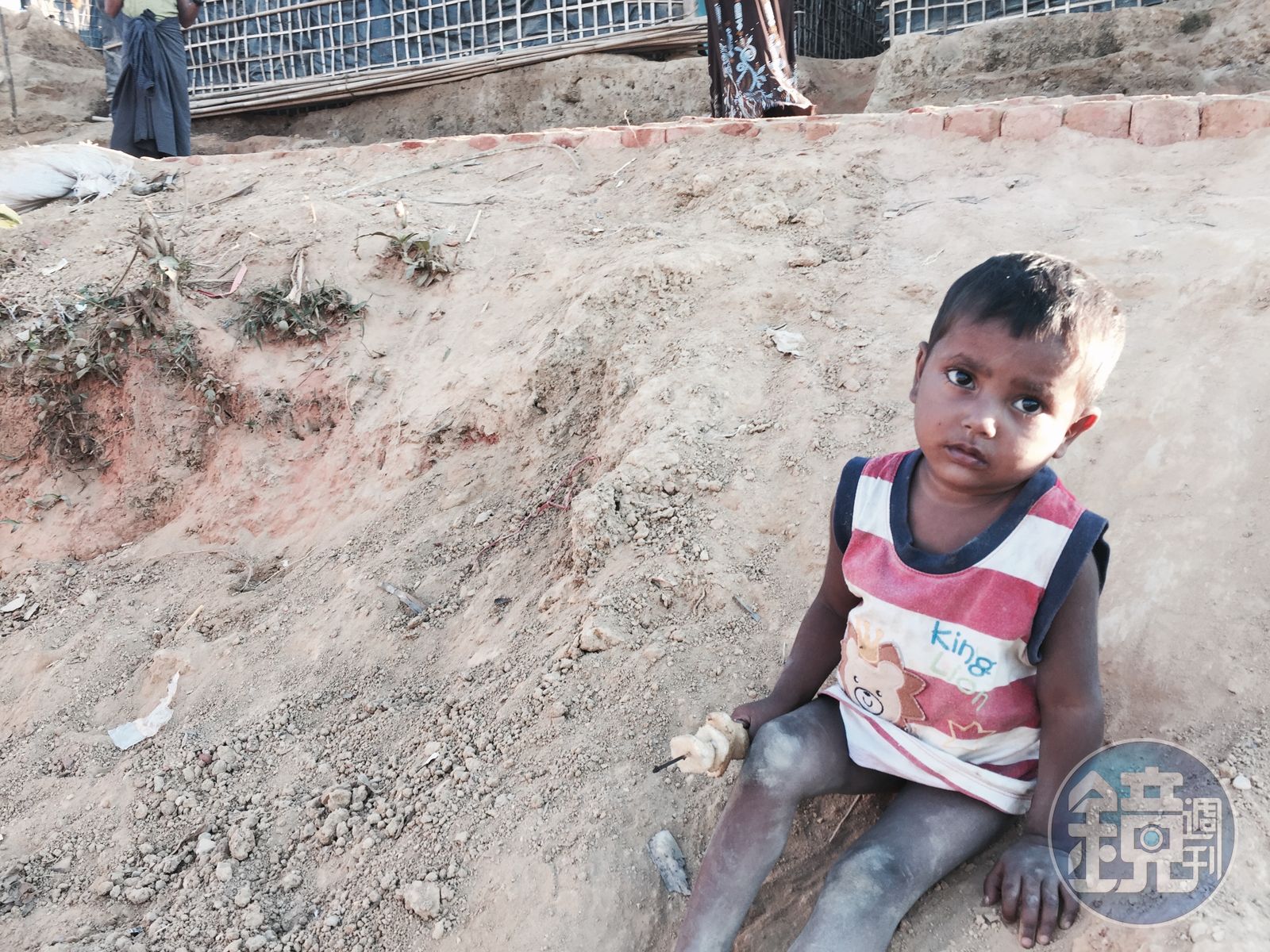 我在過去採訪時,這位小朋友因為看到陌生人靠近他,他開始大哭。我試著要旁人幫我跟他解釋自己的來意,但他太小不了解,所以繼續哭。我在他的旁邊做了一個電視新聞的Stand,向觀眾說明羅興亞難民的現況,還有因為醫療設施不足,必須受寄生蟲所害的小朋友的狀況。