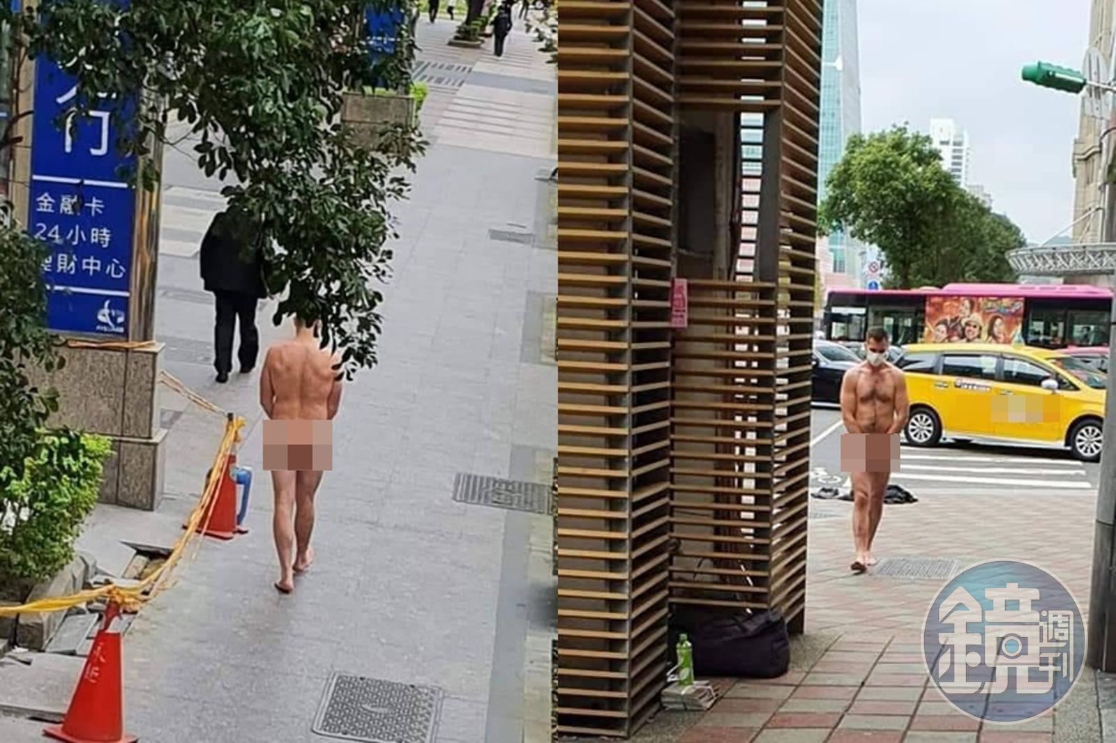 本刊今日接獲讀者爆料提供「遛鳥俠」照片,透露今早上午在信義商圈遇到一名外籍人士臉上戴著口罩,當街突然上演脫衣秀,讓路人看了全傻眼。