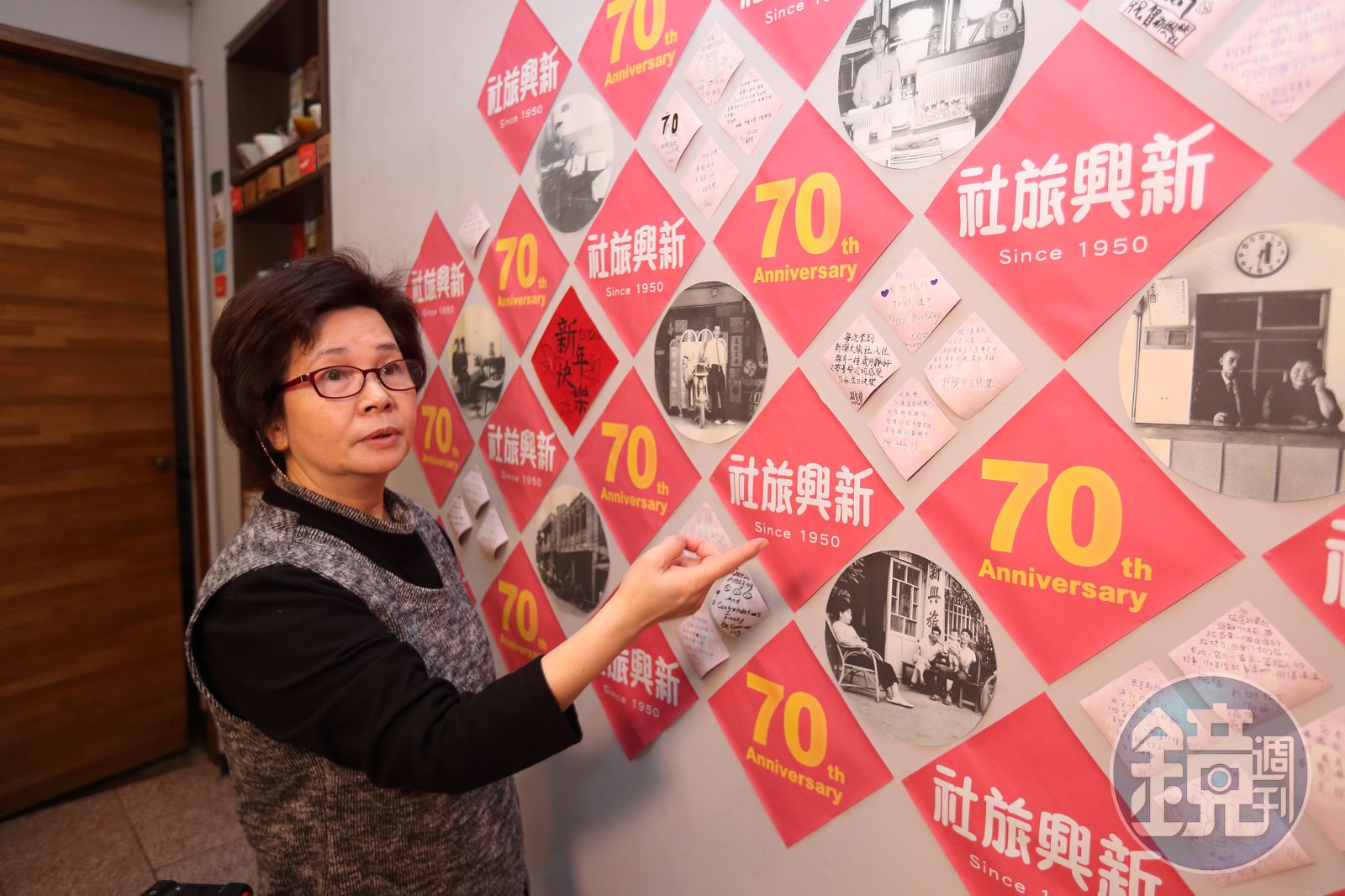 新興旅社的另一處牆面上,貼滿了旅客的留言,旅社的第二代老闆娘劉秋菊細數著每張留言背後的故事。