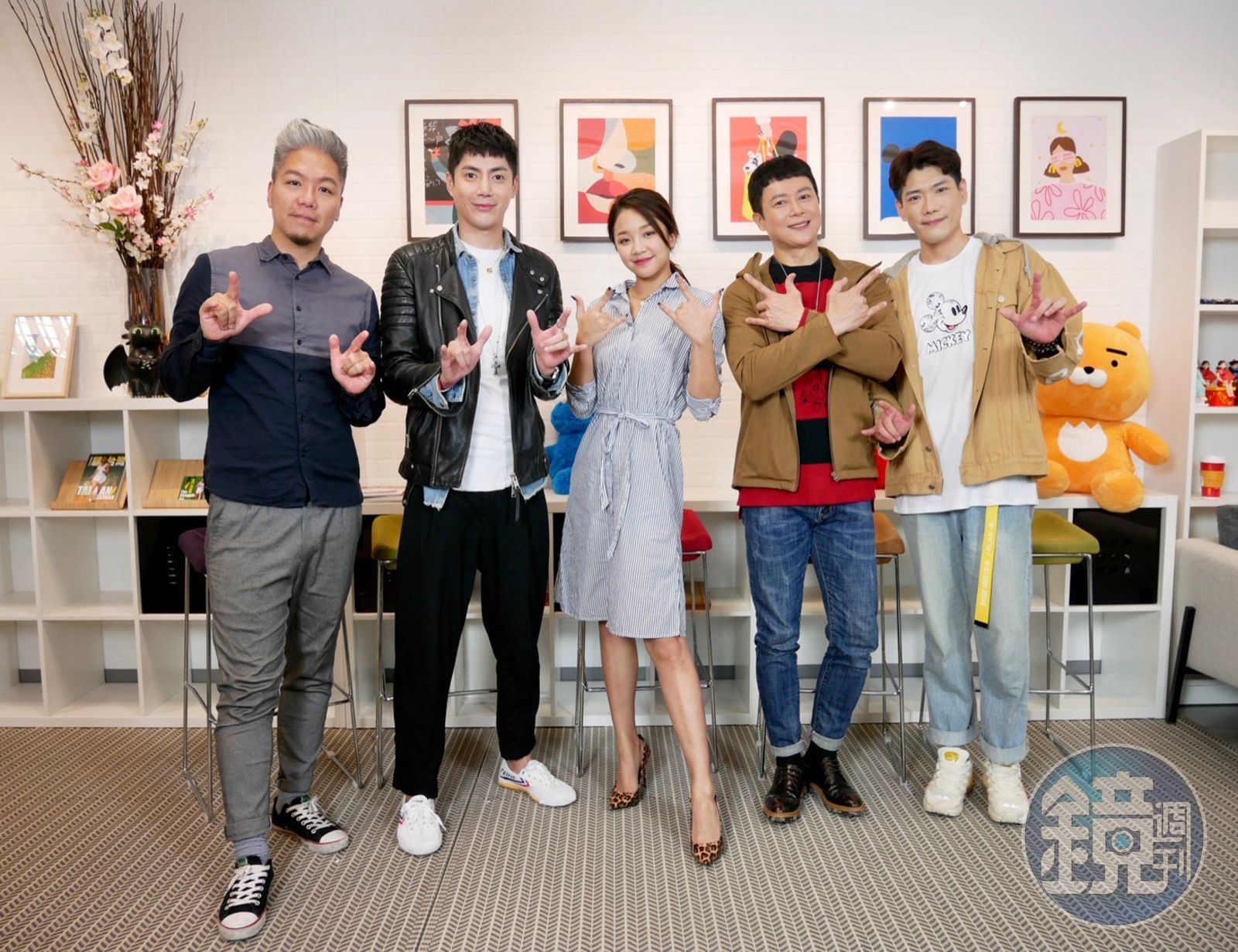 王燦(右二)、王凱(左二)及賴慧如(中)到《娛樂超skr》大談拍戲趣事。(民視提供)發布時間:2020.03.20 21:48 臺北時間