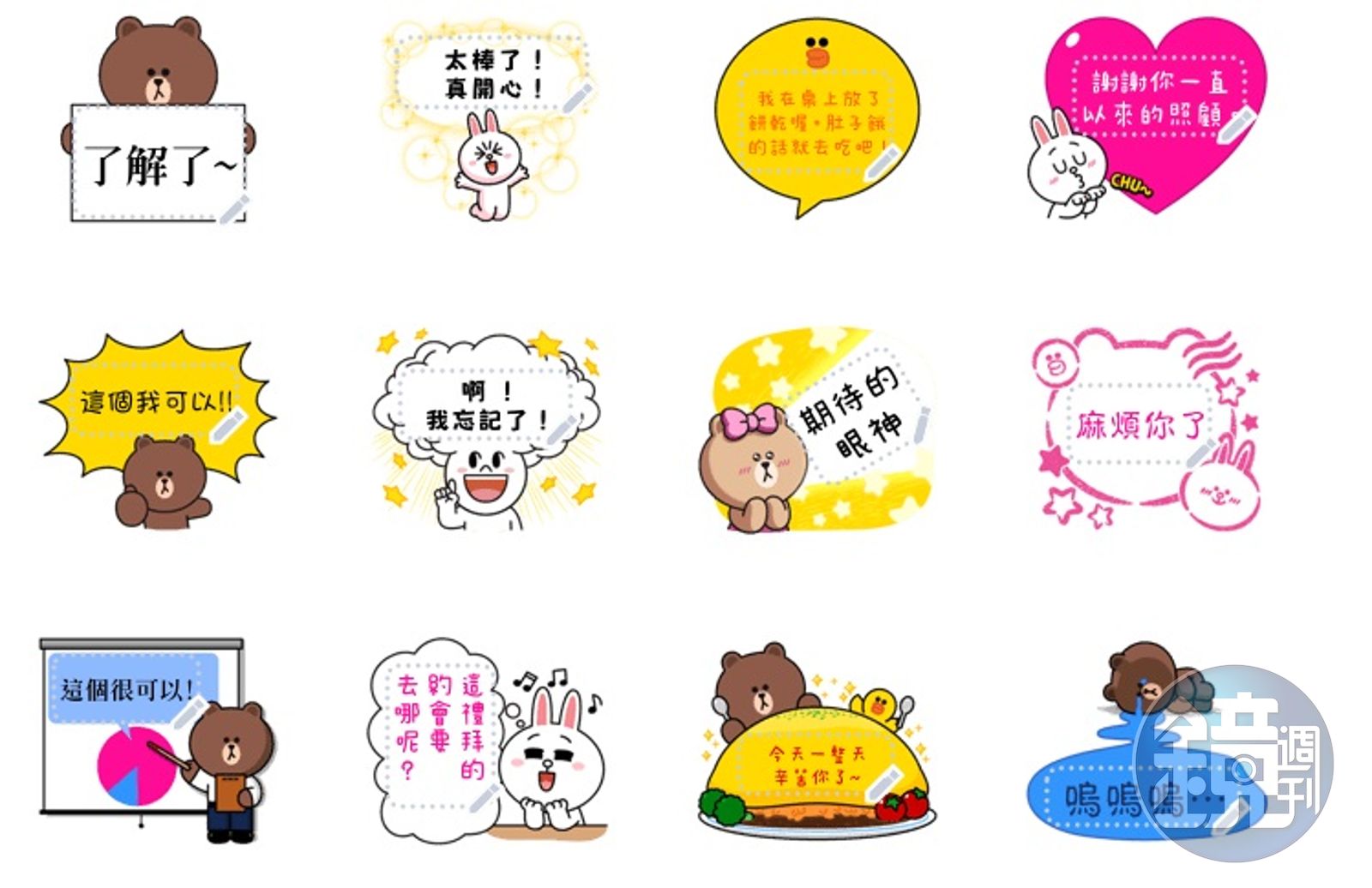 LINE官方表示,台灣人愛用貼圖增加聊天樂趣,也更能在各種時機巧妙傳達情緒。訊息貼圖能針對不同情境想說什麼就說什麼,無論是麻吉嗆聲、情侶拌嘴、上班抬槓甚至賣家公告等,訊息貼圖可讓畫面文字通通到位。