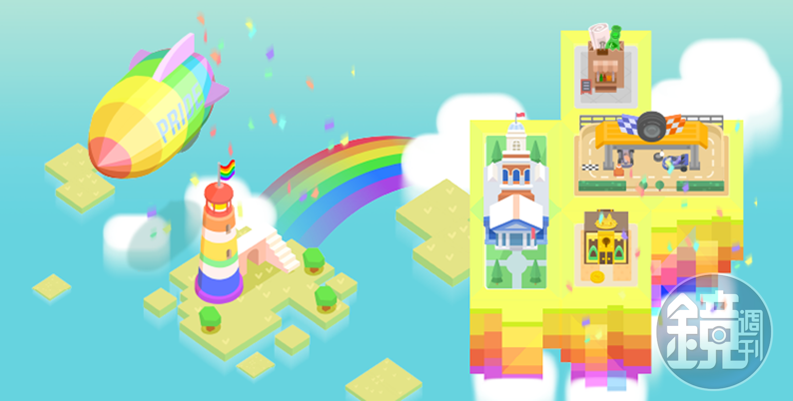 透過收支記錄就能蓋出一棟棟可愛建築的《記帳城市》,特別推出「平權彩虹」主題場景限時免費下載;場景內有繽紛的飛船、和平的燈塔以及七彩的旗幟,訴說不論性別、每個人都有相愛的權利。