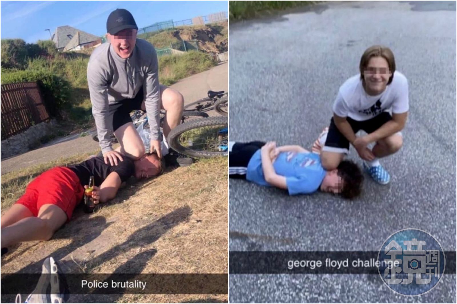 但也有屁孩玩笑開過頭了,竟然在社群媒體上發起了「佛洛伊德挑戰(#GeorgeFloydChallenge)」的遊戲,由兩人分別模仿佛洛伊德和施暴警察,其中扮演警察的人用膝蓋壓住另一人的脖子,重現佛洛伊德被殺害的現場來拍照。