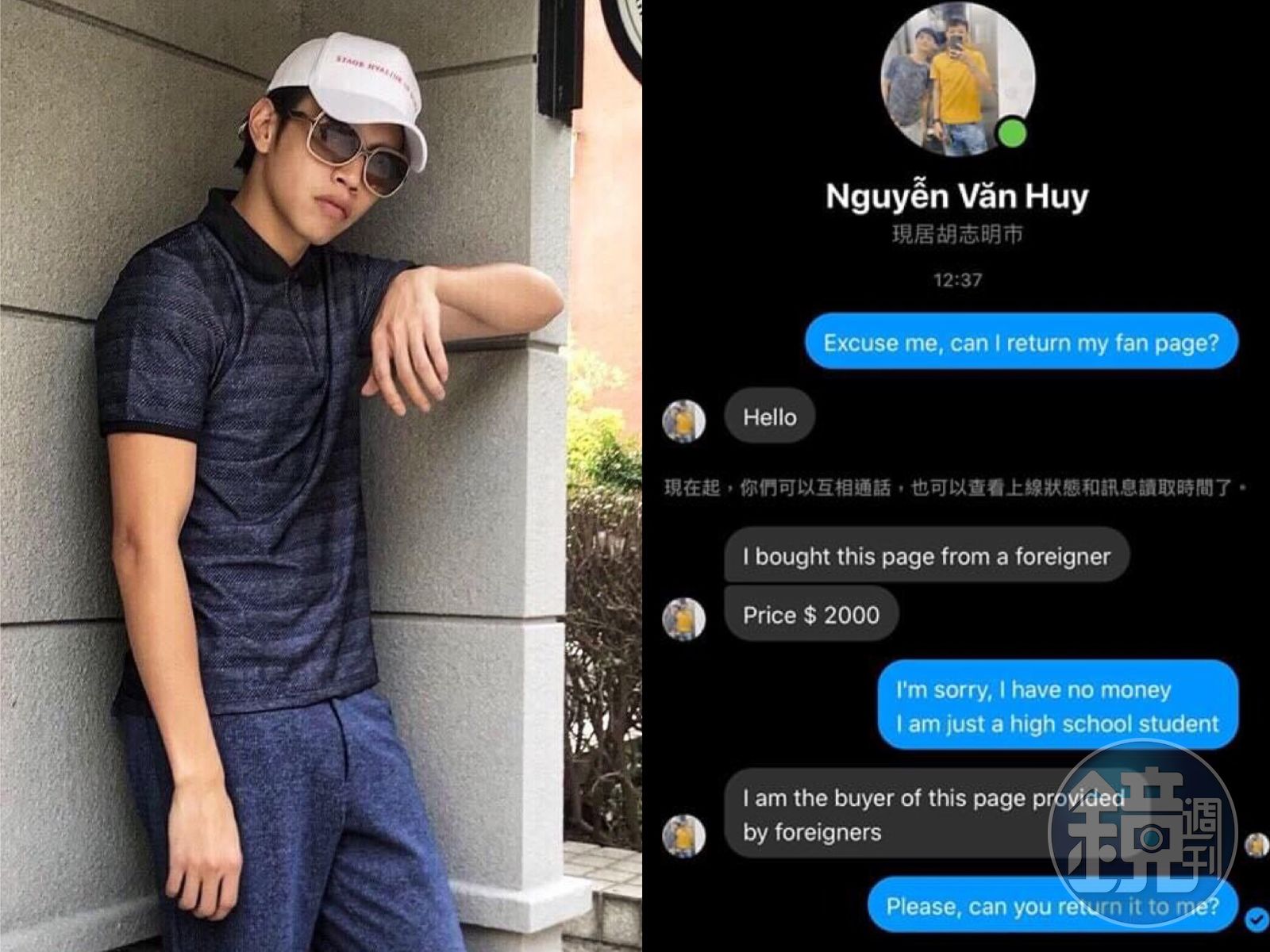 當下鯰魚哥趕緊假扮高中生裝窮,藉機拖延時間,希望對方不要毀了他辛苦經營的粉絲專頁,同時向警方報案並請求臉書總部協助,不久鯰魚哥的粉絲頁順利完璧歸趙。