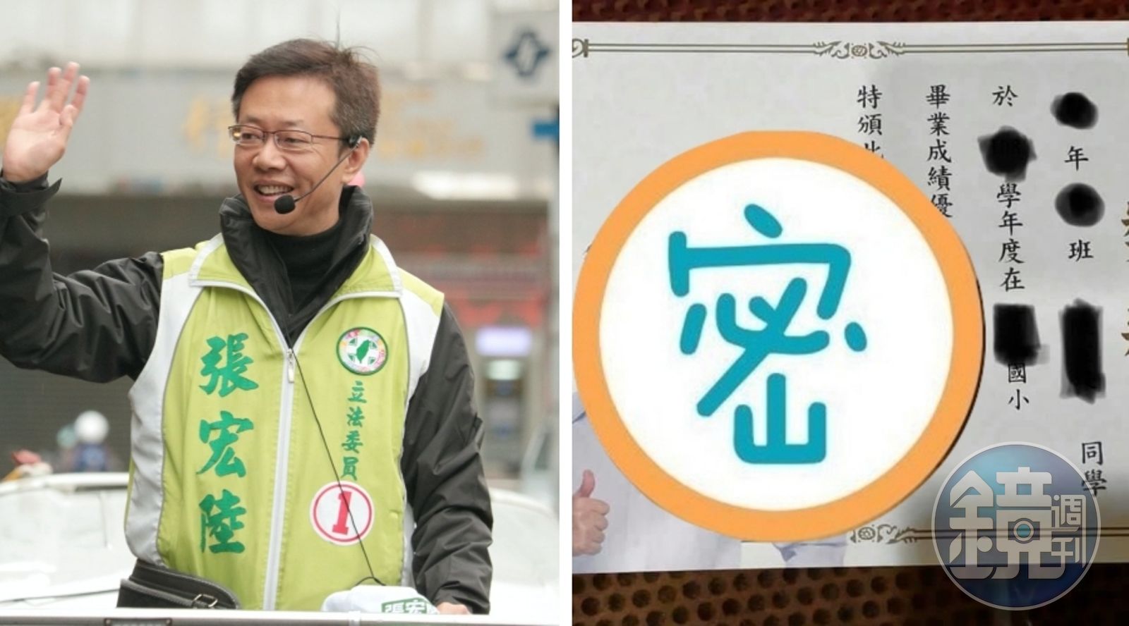 畢業季到來,許多學生也歡欣鼓舞的領取獎項,但卻有網友看到獎狀直接傻眼,PO文表示「現在的獎狀長這樣」,只見上面印著斗大的立委名字「張宏陸」以及其比讚的照片,版面甚至比獲獎學生還要大上許多。