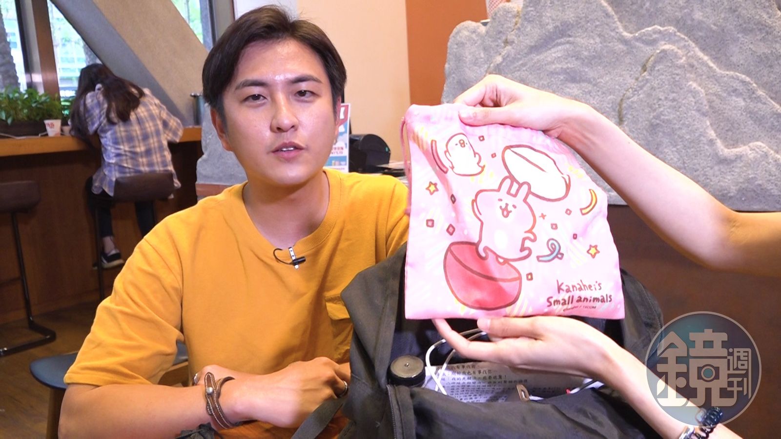 「女力劇場」是YouTube頻道「TVBS劇在一起」常態花絮單元,每週固定曝光兩支獨家片段,近期推出主題式內容受到網友歡迎,觀看次數翻倍上升。新搜包單元陸續公開李宣榕、梁瀚名等演員不為人知的一面,這回輪到黃靖倫,開始前他露出緊張神色說:「這個單元讓我非常擔心,因為我是一個戲裡戲外都不做作的人,所以我沒有動過什麼東西。」果然包包一打開就引起現場眾人驚呼連連,包括原子筆、筆袋、束口袋、充電器、悠遊卡、別針充斥著粉紅色卡通人物,他打趣:「希望這個(搜包)影片播出後,他們可以找我代言一下。」