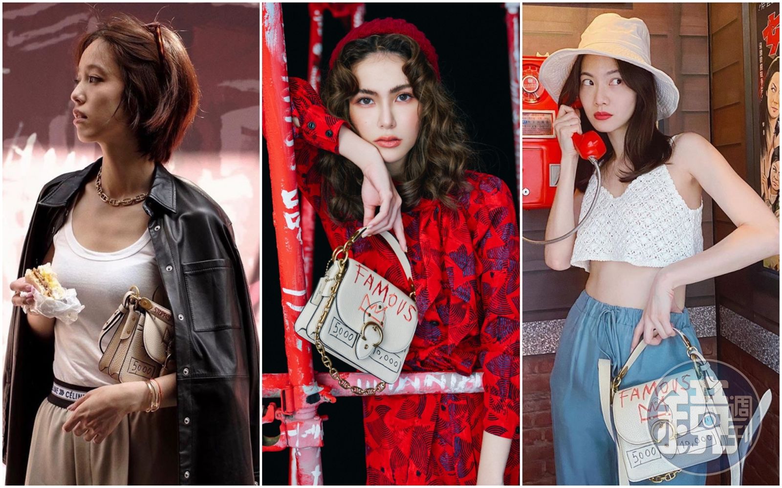 (左起)陳庭妮、昆凌、曾之喬分別以不同裝扮演繹相同的COACH x Jean-Michel Basquiat聯名系列肩背包。NT$25,800。(COACH提供)發布時間:2020.09.15 21:19 臺北時間