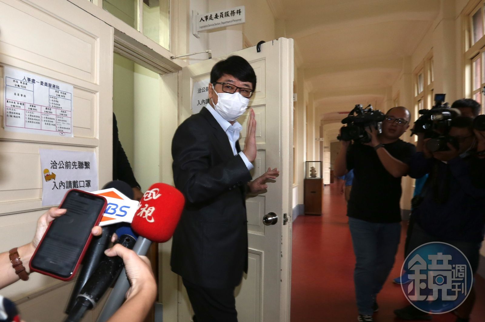 趙正宇是在今天中午約11時半時,戴著口罩在助理陪同下,先前往人事處完成本會期報到手續,隨後再前往議場大門口簽到。