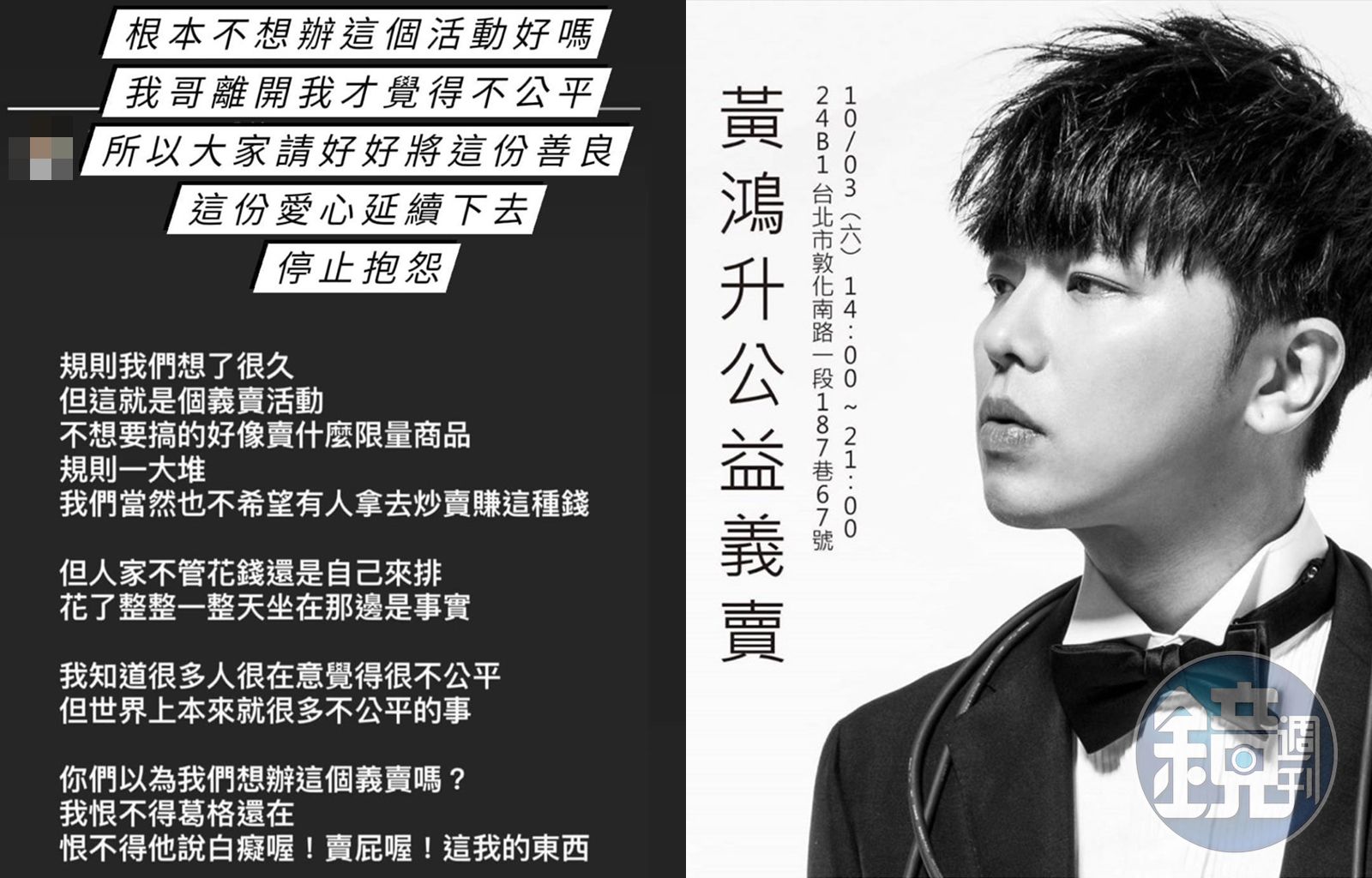 黃鴻升的妹妹則轉發老公說法表示支持,承認自己根本不想辦這個活動,「我哥離開我才覺得不公平,所以大家請好好延續這份善良,這份愛心延續下去,停止抱怨。」