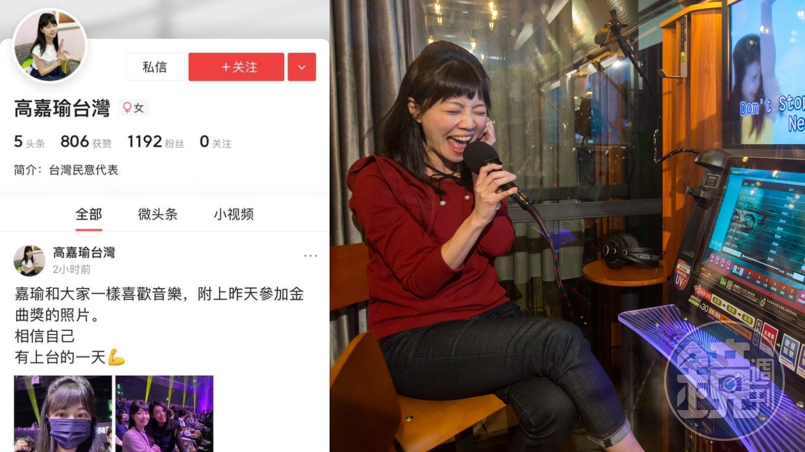 立委高嘉瑜先前就發現,她的名字不知道被誰盜用,拿去中國的社群網站「微博」開設假帳號,沒想到昨天她又發現,類似的情況再度發生,這次是在另一個中國網站「今日頭條」,盜用者用了她的照片和名字建立假帳號,簡介還不用「立法委員」,而是「台灣民意代表」,甚至還直接複製高嘉瑜前2天參加金曲獎的動態和照片來發文。
