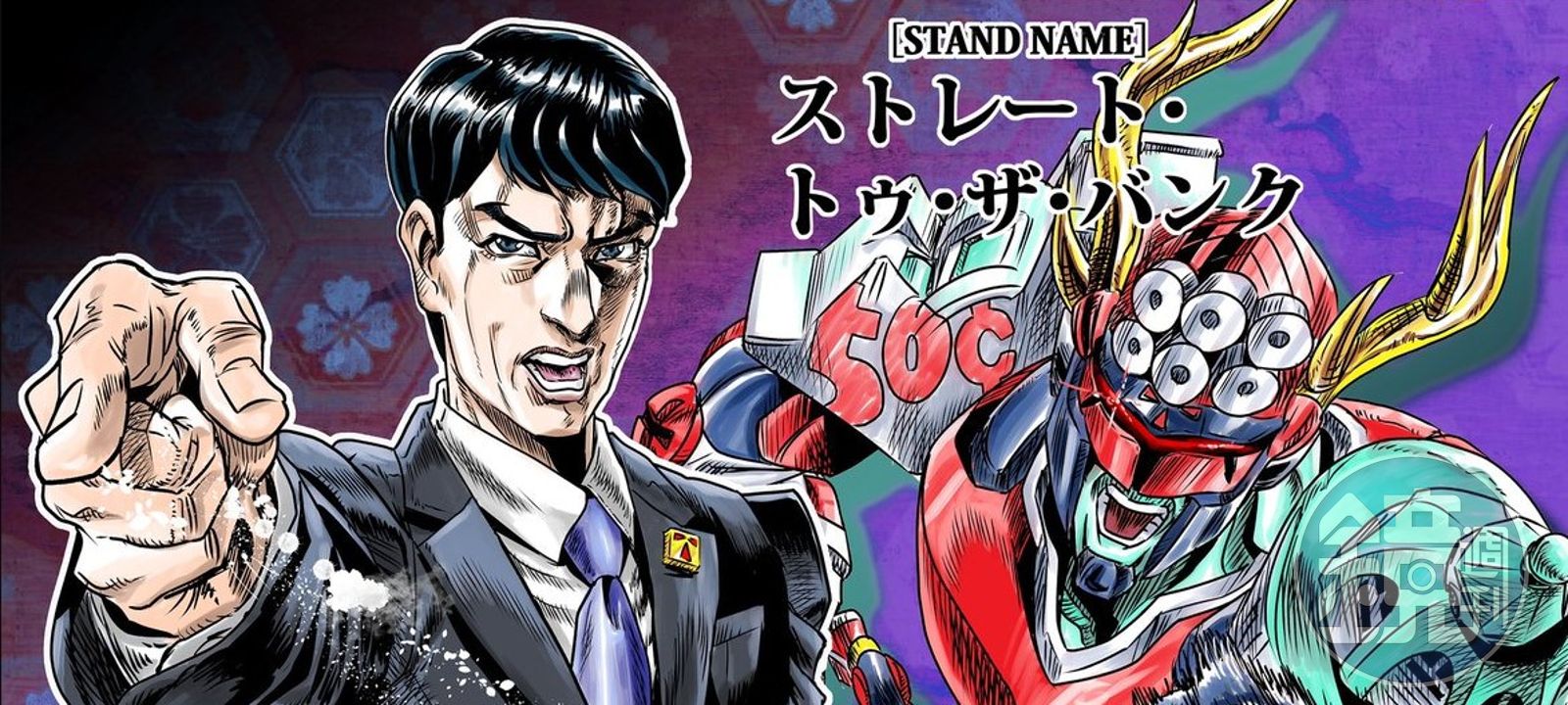蘆谷耕平時常在個人社群上大玩JoJo化,明星藝人生日時也常會繪圖祝賀,這次他為堺雅人繪製的生日賀圖,把半澤直樹也JoJo化,座右銘是角色的知名台詞:「人若犯我,我必犯人,加倍奉還(やられたらやり返す、倍返しだ)。」替身名稱是「Straight to The Bank」,直譯是「直闖銀行」,必殺技「P.Y.B.D. (I'll pay you back double)」,只要得罪他的人,肯定要付出慘痛的代價。