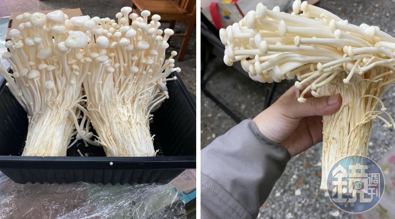這位網友在臉書社團「Costco好市多商品經驗老實說」發文,中秋節到賣場購買烤肉食材,沒想到沒吃完而放入冰箱保存的金針菇竟然「長高變大」。照片中可見,金針菇往側邊生長不少,連根部長度也增加,看起來甚至更像雪白菇。