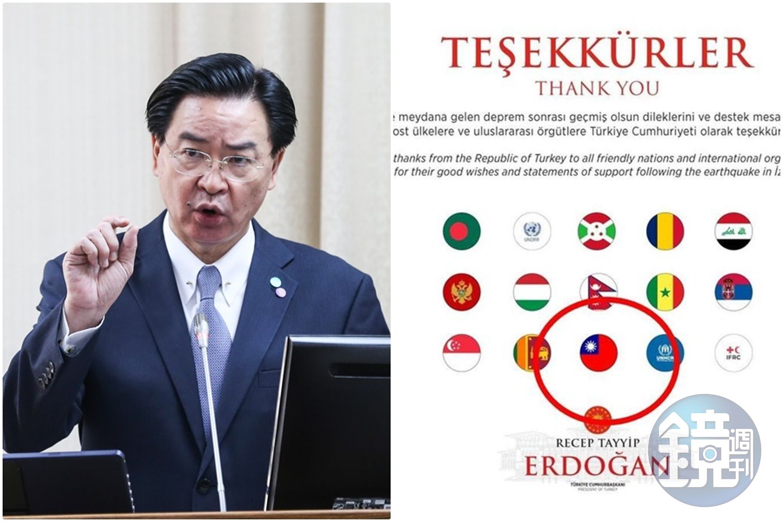 外交部長吳釗燮指出,土耳其是受中國施壓而刪除我國國旗,也強調台灣不會因此退縮。(左圖本刊資料照,右圖翻攝自艾爾段推特)發布時間:2020.11.02 12:02 臺北時間
