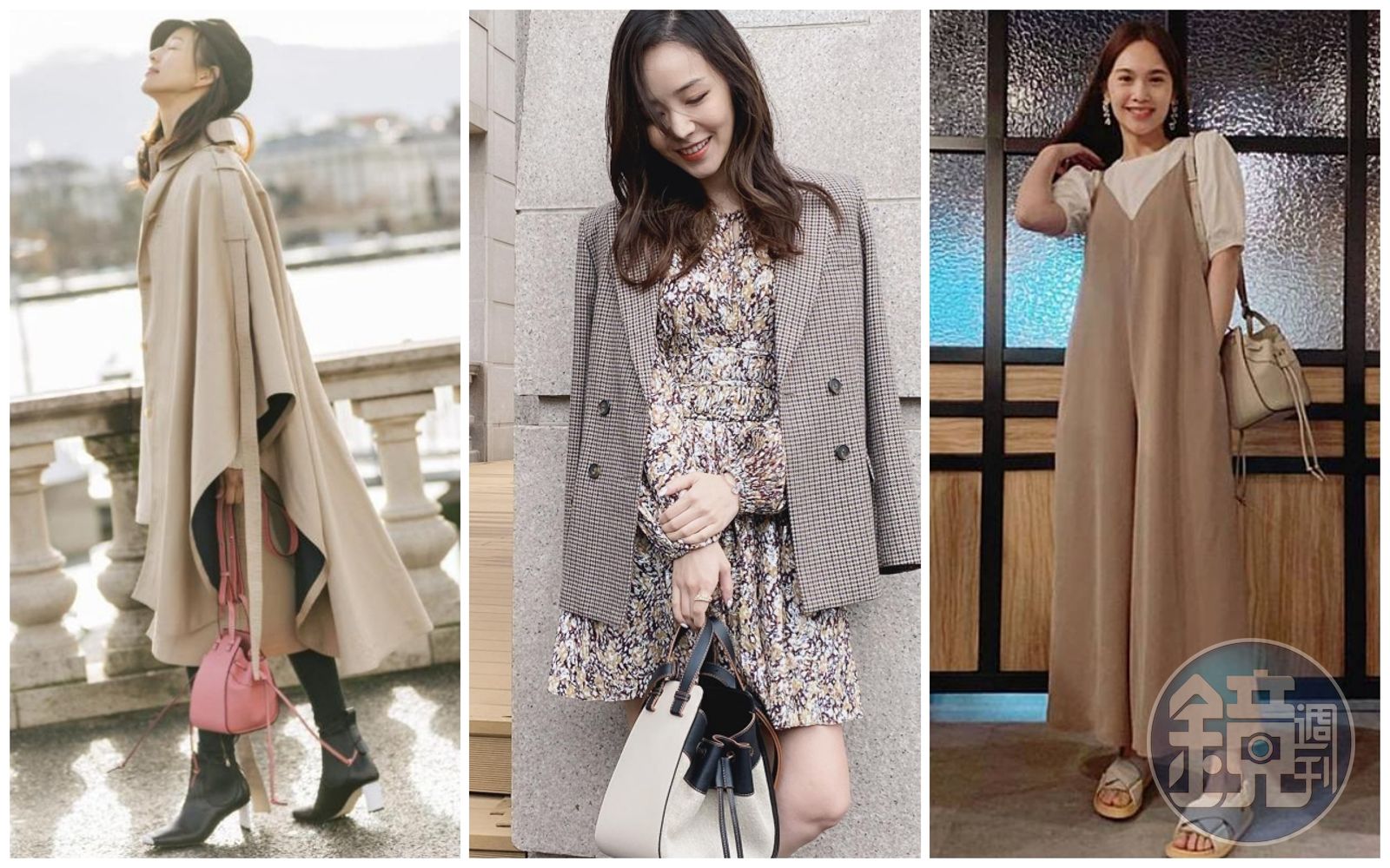 張鈞甯(左起)、侯佩岑、楊丞琳,分別以不同服裝風格詮釋Hammock包款。(LOEWE提供)發布時間:2020.12.09 19:48 臺北時間