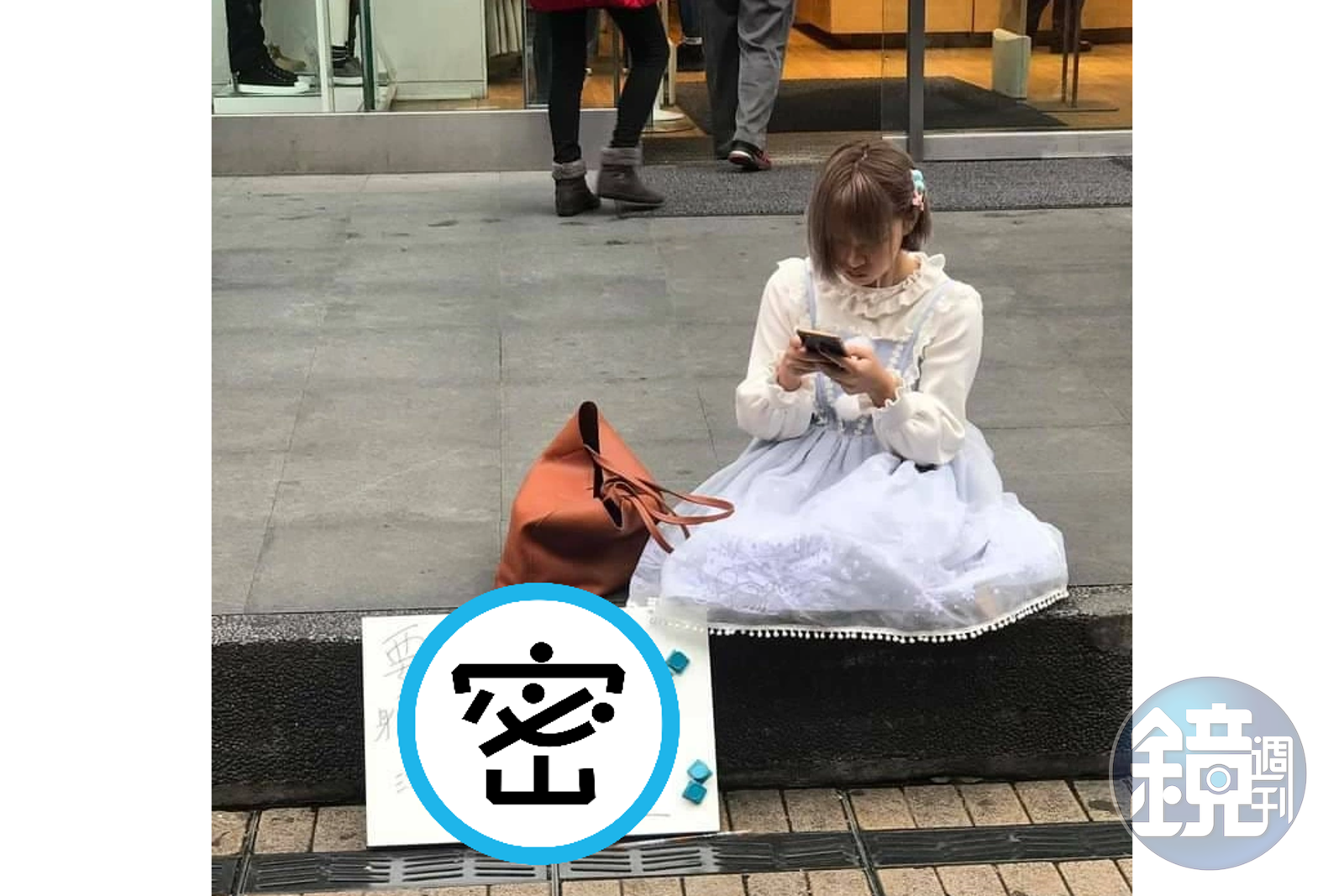 路人拍下這名穿著紫色小裙子、做羅莉塔打扮的女子,上傳臉書社團「爆廢公社二館」,只見女子拘謹地坐在西門町滑手機,一旁放著自製的徵友看板,條件只有5項,分別為:年滿20歲、身高172公分以上、不要胖、帥哥加,附註「渣男退散」,並在最後寫上自己的Line ID,讓有興趣認識她的男性加好友互聊。原PO註解道:「佩服她的勇氣,想應徵的趕快去」。