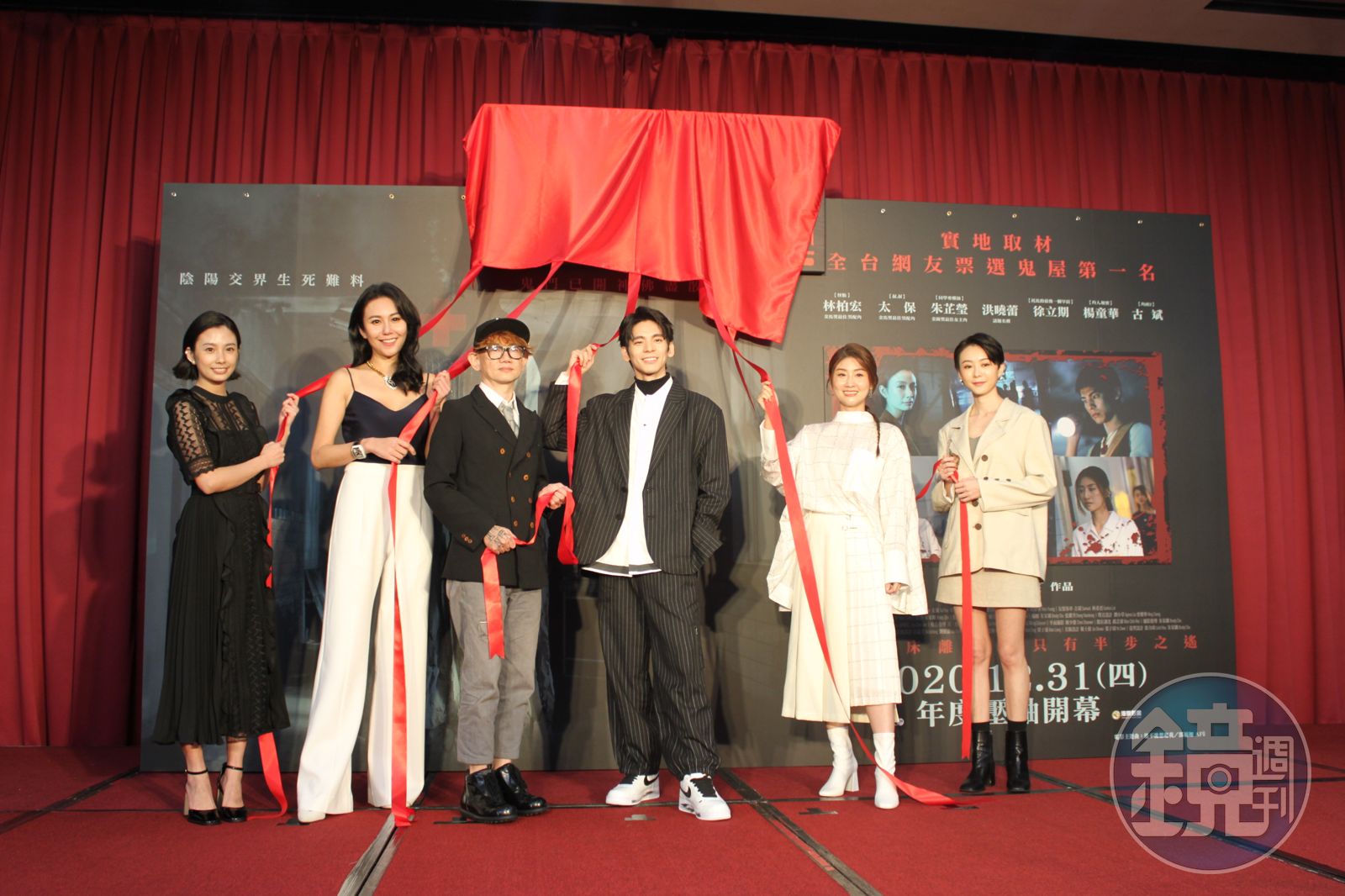 但聽到朱家麟搬出「驚世夫妻」4字,洪曉蕾臉色尷尬直道「一定要提這個嗎?」但也透露王世均主動向她表示會包一場,洪曉蕾更主動加碼幫他加到3場。媒體問洪曉蕾「好朋友」包場她會不會出席?洪曉蕾大方回答「什麼『好朋友』,就『前夫』!講『好朋友』聽起來很曖昧。」笑說自己可以化鬼妝出現,她片中的鬼妝恐怖到林柏宏都說不敢直視,每次上妝都要好幾小時,也因為要在臉上貼皮,整個人可說沒有表情,堪稱不苟言笑,她大嘆「我也想講笑話,可是那個臉要怎麼講?」