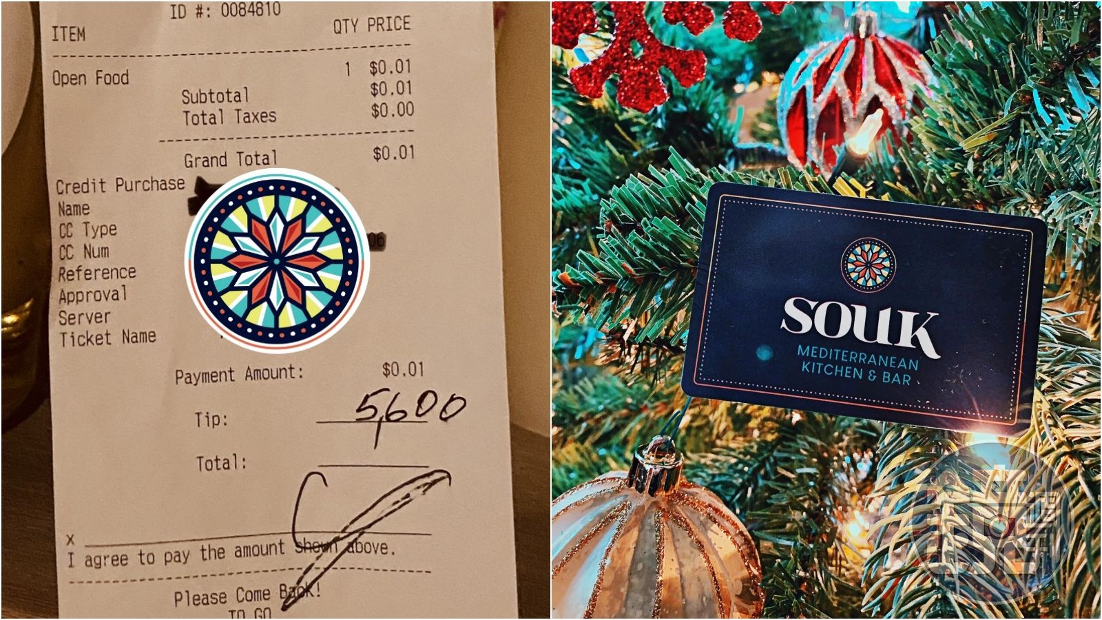 美國俄亥俄州一家地中海餐酒館「Souk」,12日迎來一名「耶誕老人」,老闆兼主廚Moussa Salloukh在臉書po文表示,他們收到來自一名希望匿名的客人留下的5,600美元的小費,表示要平分給店內全體28名員工,每人200美元,不論該員工當天是否有值班,「這對我的員工來說,是一件令人驚奇的善意之舉。」