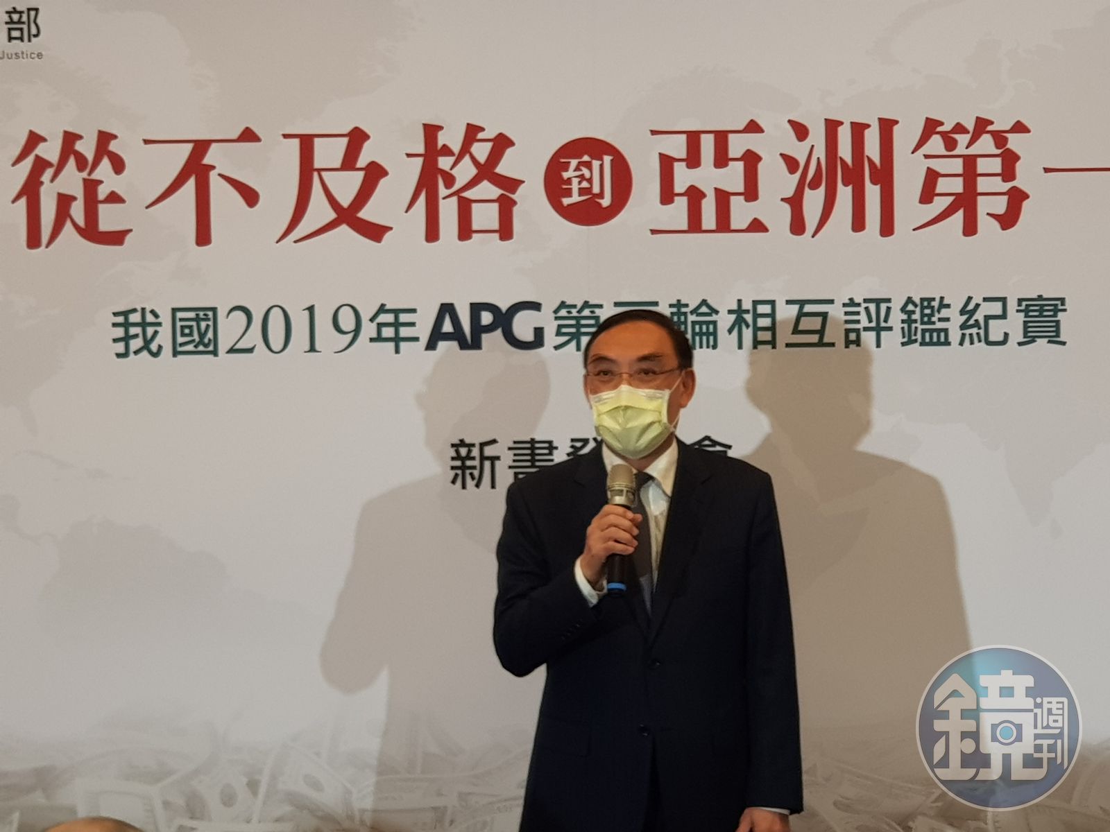 而部長蔡清祥提到洗防評鑑歷程也表示,當初我國是亞太防制洗錢組織的成立會員國,但隨著時間演變,我國在去年洗錢評鑑前夕突然被降2個等級,恐影響總成績至「加強追蹤」,對此我國要求暫緩公布,洗防辦僅剩1天的時間因應,緊急提出相關數據回應,才獲得評鑑團認可,並在澳洲年會時,以手板方式說明我國洗防運作,奪得「一般追蹤」的亞太第一最佳成績。