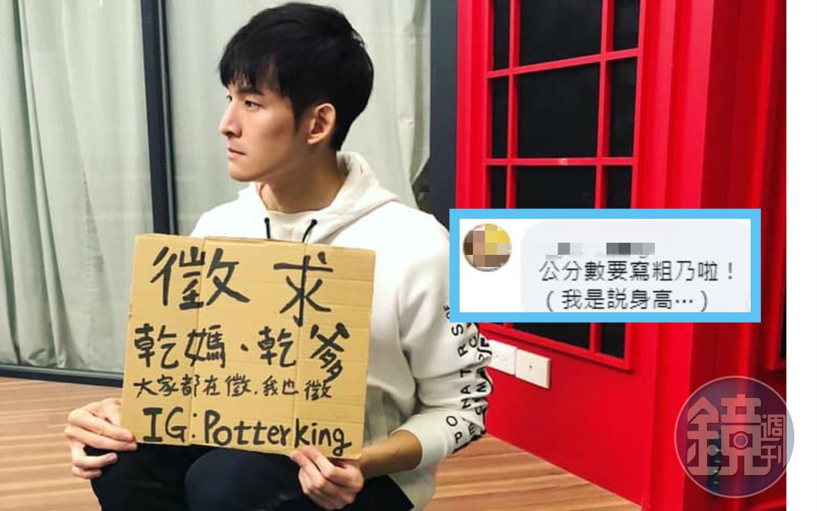 他搞笑使用了最近的鄉民流行語「阿姨我不想努力了」,其中一張照更直接平躺腿開開。網友開玩笑回覆「公分數要寫粗乃啦」!然後再補一句「我是說身高」。畢竟「館長」徵乾媽,可是有註明「正港30公分不含頭,有少包退」。