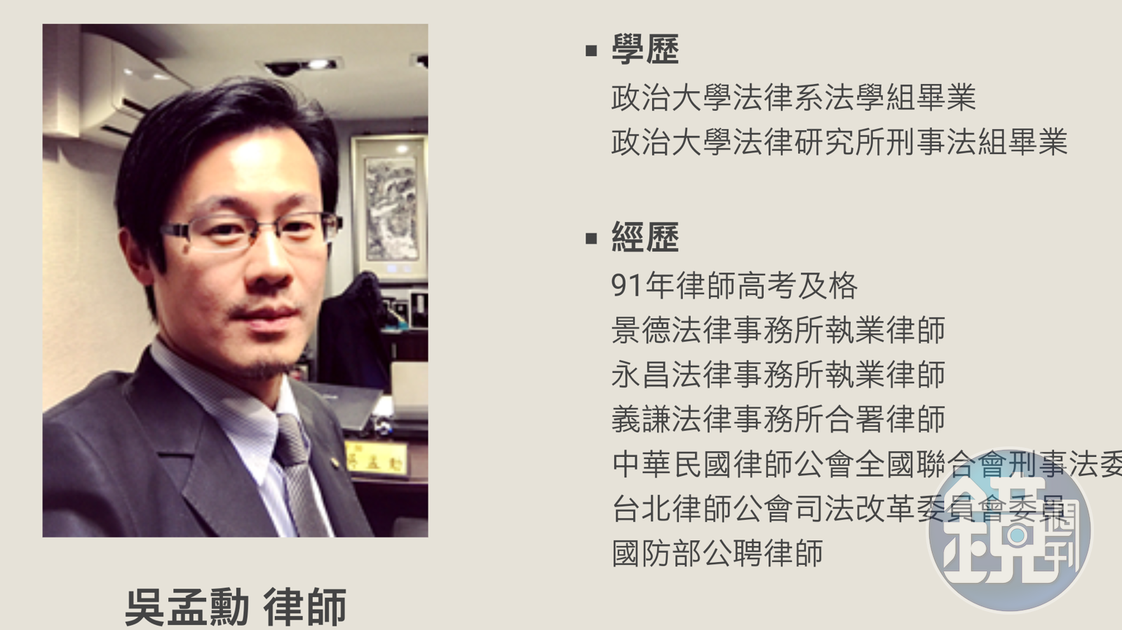 吳孟勳強調,當天他的確與翁茂鍾見面,他當時任職於陳永昌律師的事務所,他與陳永昌一起擔任翁的辯護律師,吳孟勳表示,那天是翁來事務所找他,談後續出庭的事,因為他即將要自行離職開業,為了讓後續接他工作的律師有充分時間準備,因此跟翁茂鍾談論向法院要求延後開庭。