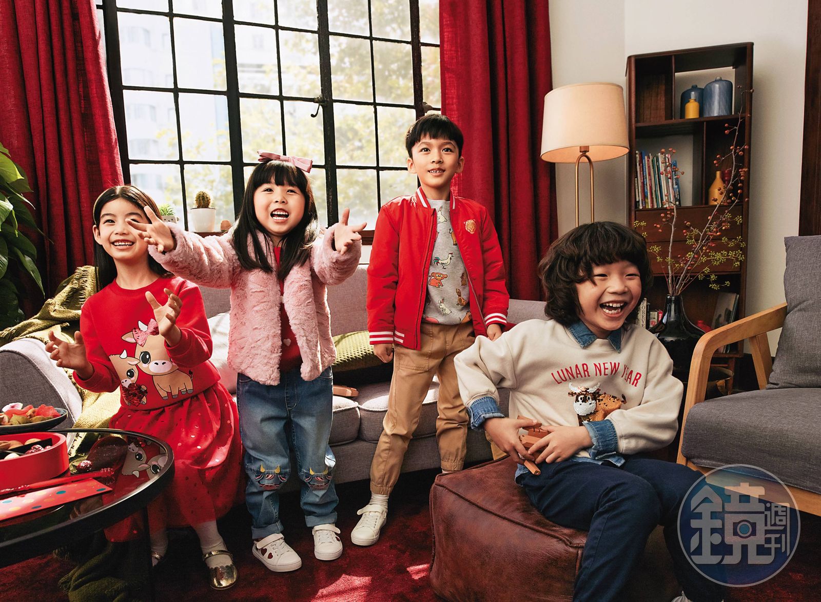 農曆年免不了要討個吉利,紅通通過個好年!今年H&M童裝新春系列,把可愛的小牛圖案放在小朋友身上,象徵健康與平安的美好祝福。除了有大紅的好運衛衣,女孩們也有洋裝與粉紅色系上衣可選擇。H&M更推出多款親子裝,營造新年溫馨的家庭氣氛。