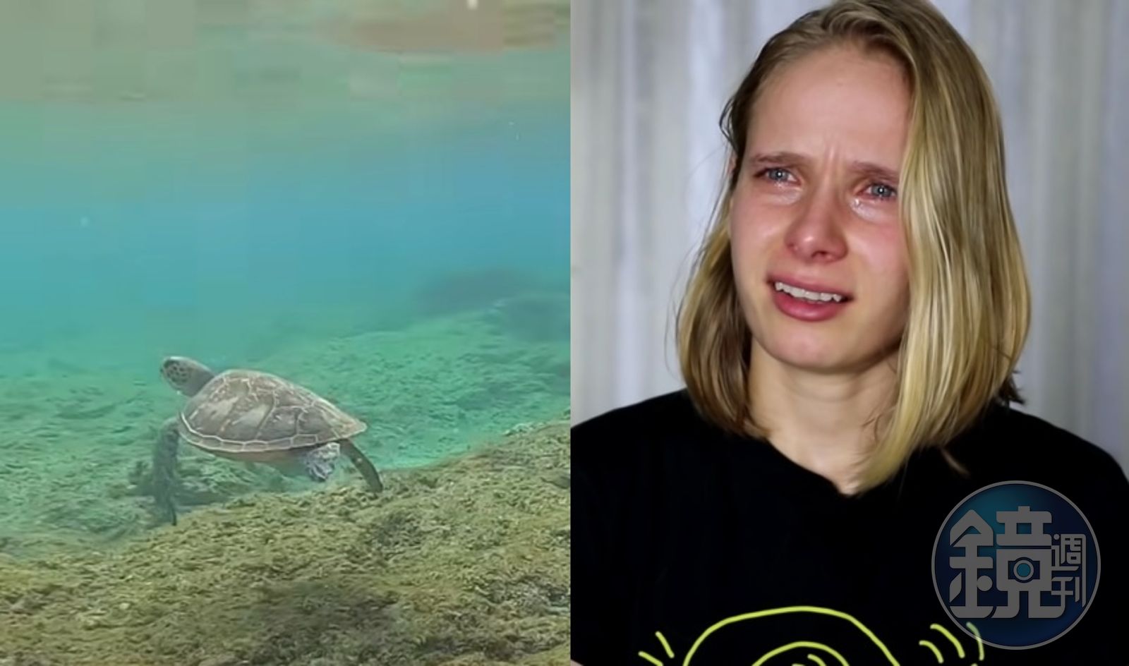 莉娜說明,「我之前去小琉球,一個非常漂亮的地方」,但她在介紹的同時不禁聲淚俱下,表示因為自己在小琉球浮潛時,竟然目擊海龜在吃人類亂丟的塑膠製品,因為遊客沒有公德心亂丟垃圾的行為,讓她看到台灣「可怕的一面」,莉娜更忍不住當場飆淚,「這些動物不應該這樣失去生命。」