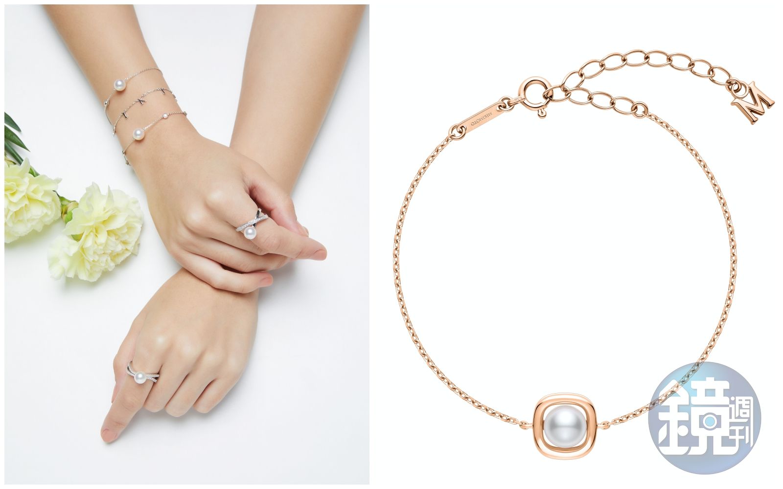 今年MIKIMOTO以單顆珍珠獻上最獨一無二的心意:全新Sweets Collection「Hard Candy系列」手鍊,以糖果為設計靈感,好比甜蜜的愛情、粉紅K金則象徵愛情的堅實,包覆著溫潤情感寓意的珍珠;手鍊以簡約方形線條設計綴以色調溫潤的日本Akoya珍珠,承載著戀人永恆不朽的愛,為愛侶表達滿滿的甜蜜心意。