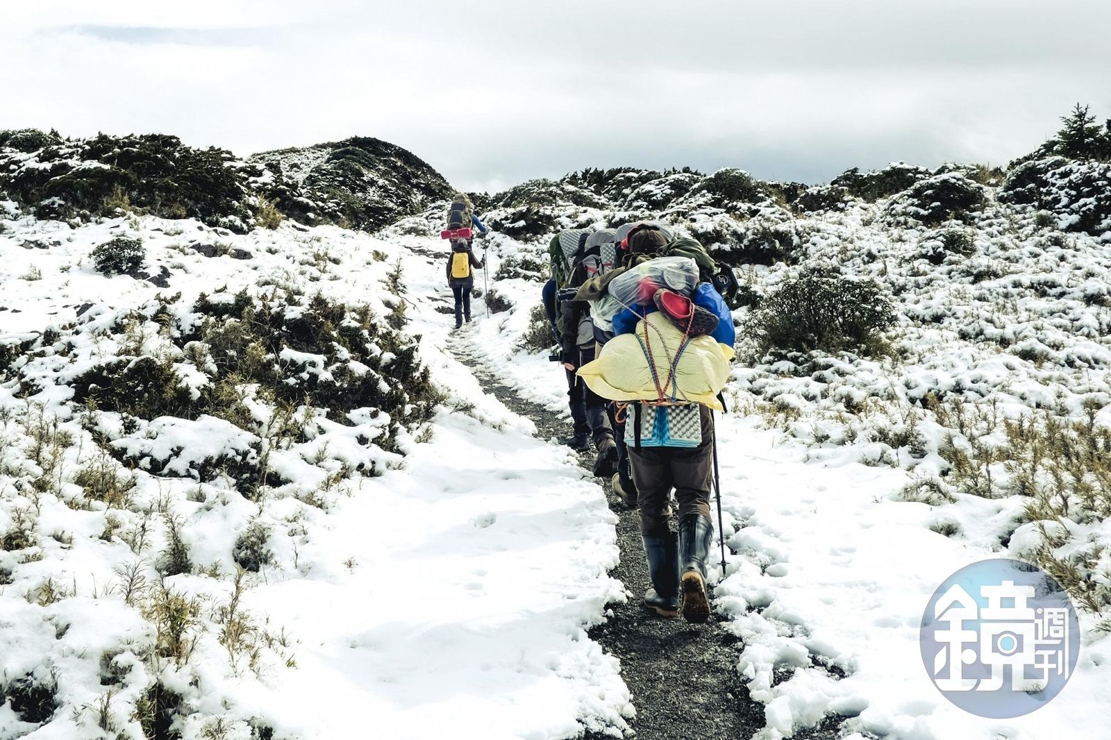 第二集的聖稜線,更因為遇到提早報到的大雪,領隊張元植判斷無法通過素密達斷崖,只能撤退。「我們想拍出張元植帶著媽媽,透過爬山扭轉親子關係的過程。對他來說登頂不難,但要考量媽媽和攝影團隊的安全。 」程紀皓說。
