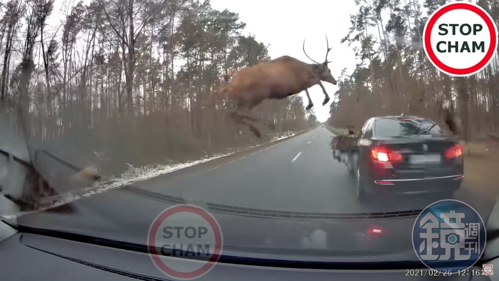 影片中可以看到,一輛黑色BMW行駛在筆直的道路上,左側樹林卻突然衝出一群鹿,有幾隻甚至直接踩過車子離去,駕駛趕緊將車子停在一旁,而這畫面全被後方的車子錄下,所幸這場「車禍」沒有造成傷亡,車子也只有受到輕微損傷。