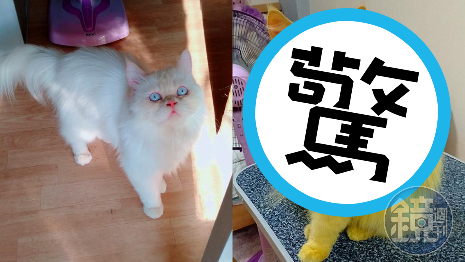 泰國一名男網友經常在自己的社群軟體上「曬貓」,其中一名「主子」是一隻毛色潔白的波斯貓Kapuang,不過在男子日前貼出的照片中,Kapuang的毛色竟從雪白變成亮黃,嚇壞不少網友。