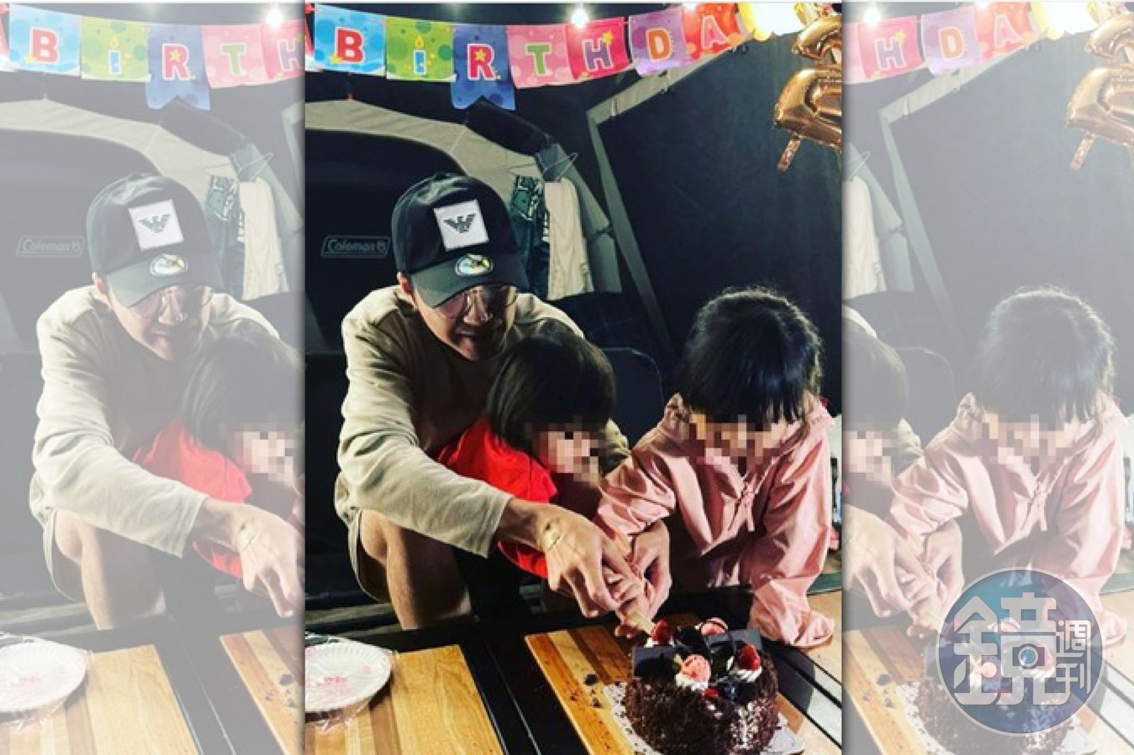 江宏傑在社群媒體po出他帶一對兒女在露營區的慶生照片。(翻攝自江宏傑IG)發布時間:2021.04.04 06:29 臺北時間
