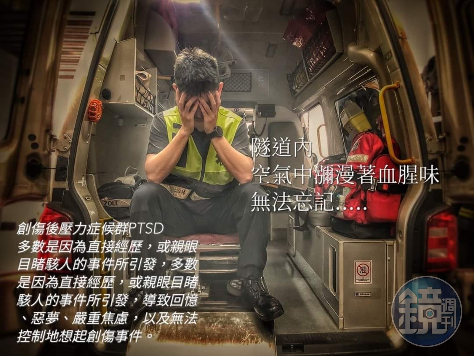 台鐵普悠瑪2018年發生翻覆意外,宜蘭消防局一名到場救援的隊員,隔年在隊上倉庫輕生,外界多猜測與該次救援後所導致PTSD有關。而這名隊員被視為檢傷英雄,英年早逝令大眾惋惜。