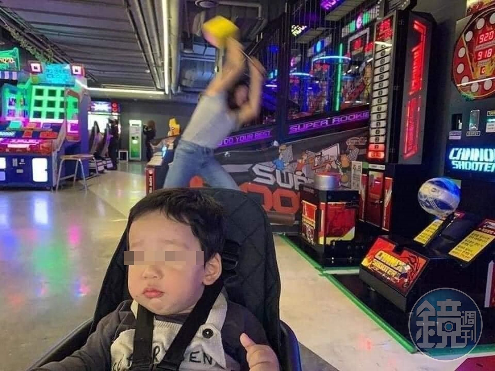 一名網友今(22日)在臉書「爆怨2公社」分享一組照片,並寫道「當孩子打不得,罵不能!地方媽媽發洩中」。從這組照片中看到,媽媽把兒子放在嬰兒車裡,自己則開始瘋狂玩遍各種機台,射擊、賽車、籃球機、KTV電話亭等設施通通不放過,但最引人注目的這張照片,是她走向拳擊機,邁開雙腳,下秒用力槌向機台,使出一技肘擊,看起來似乎累積不少的怨念與壓力。