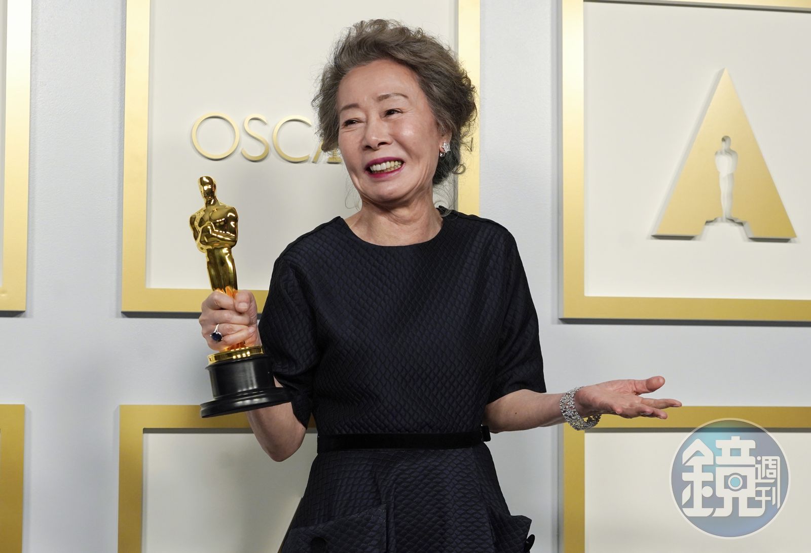 韓國資深女星尹汝貞今(26日)獲得第93屆奧斯卡金像獎最佳女配角獎,是睽違63年以來,第二位獲得該獎項的亞洲女星,她在致詞時說自己只是比其他幾位提名者幸運,「也許這是美國人對韓國演員的待客之道」,睿智又得體受到網友讚賞;而在後台被媒體問到「布萊德彼特聞起來是什麼味道?」她雖臉色微變,但不改「尹式幽默」本色說:「我沒有聞他,我又不是狗」。