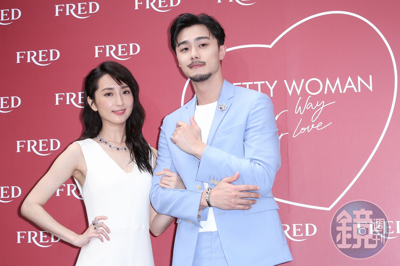 柯佳嬿(左)與施柏宇(右)一同為FRED高級珠寶上市站台,施柏宇驕傲地表示荷爾蒙、費洛蒙都強!發布時間:2021.05.06 19:28 臺北時間