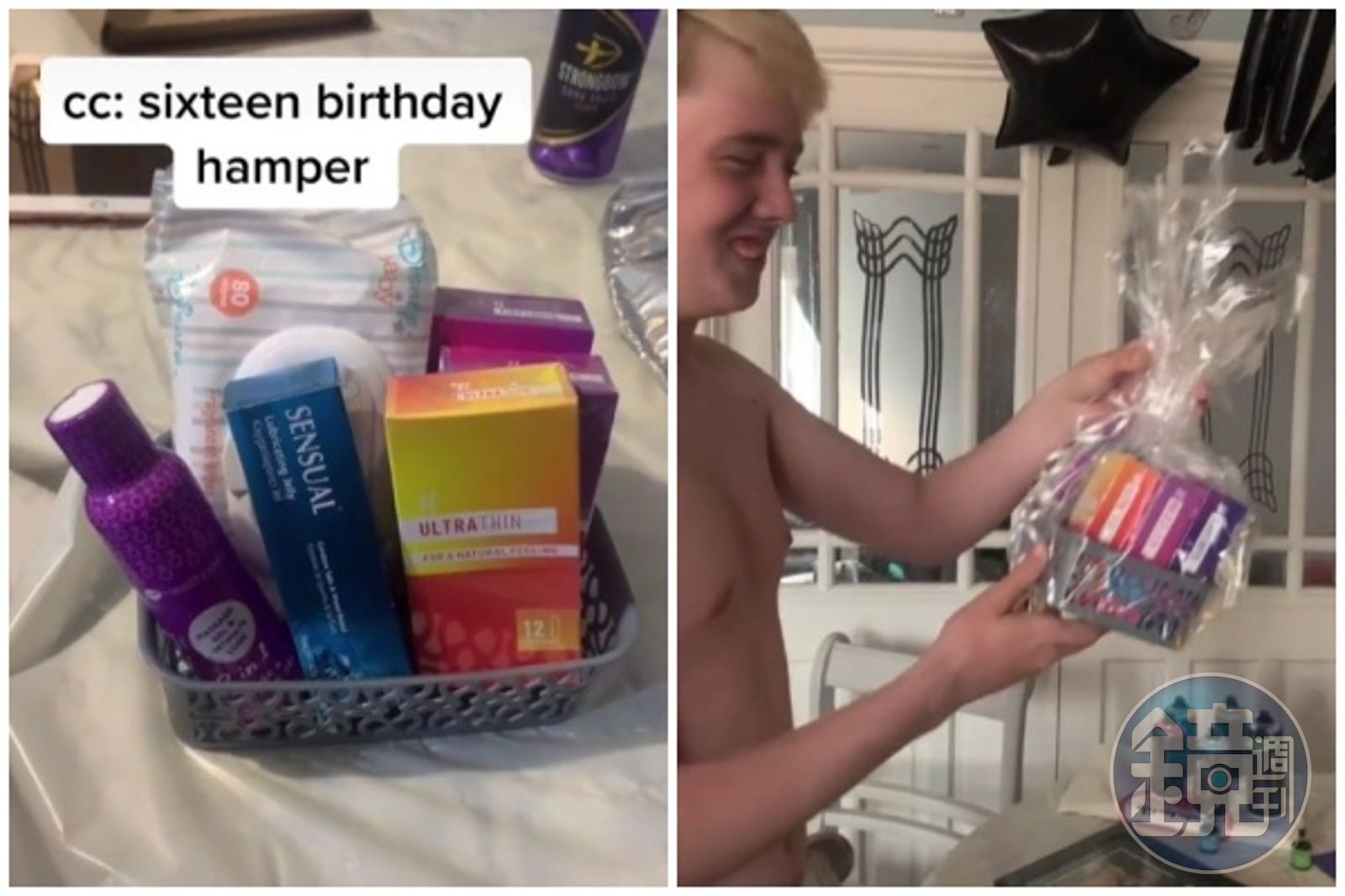 現年33歲的安德森日前在TikTok上傳ㄧ段影片,片中她準備了一個禮盒,並分別往內放入1包濕紙巾、3盒保險套和2款潤滑油,更驕傲表示「我的兒子要滿16歲了,這些是合法年紀的必需品,16歲需要的就是防護、防護、再防護。」