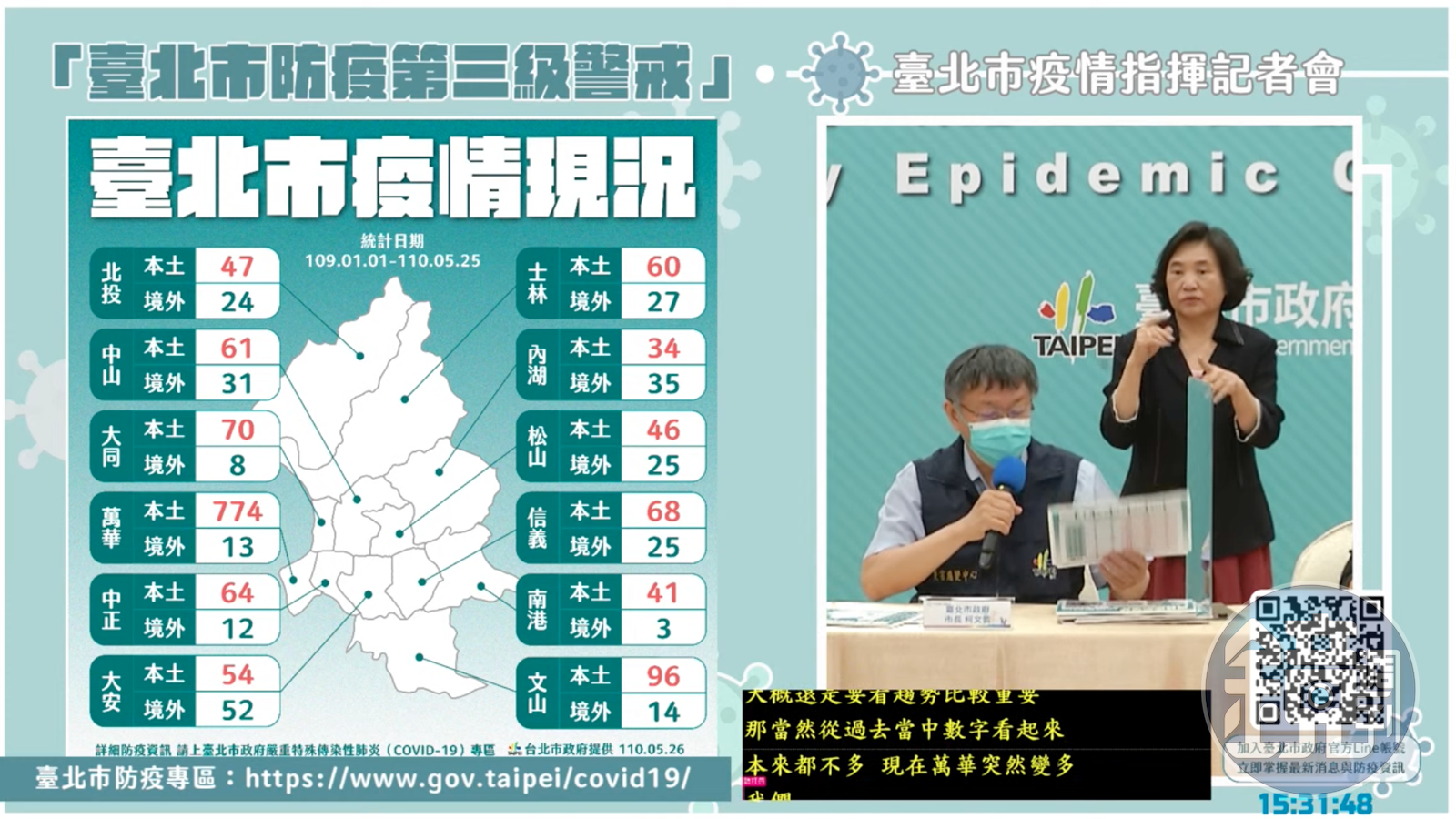 柯文哲還表示,目前確診案例數每天都在增加、病人也會因為治療會留在醫院一段時間,現在是因為大家「自動自發封城」,才能夠把確診數控制在醫療體系能掌握的範圍內,不過看起來短期內全國應該無法解除三級,若要更以積極方式解除警戒,要不然就是採取比較極權國家的方式「硬封城」,另一個就是打疫苗。
