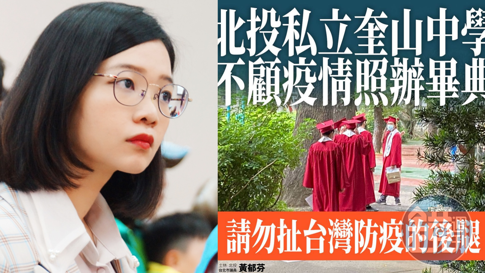 議員黃郁芬在臉書發文寫下,「今天早上讓所有北投人、士林人火冒三丈的消息,就是私立奎山中學不顧防疫禁令、不顧畢業典禮全面停止辦理的規定, 強硬舉辦畢業典禮!」附近民眾聽到校園裡傳來陣陣的歡呼聲,全都相當傻眼,她本人看到這個訊息,同樣又氣又傻眼。