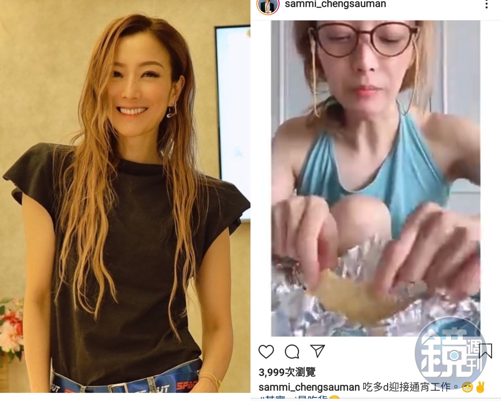 自稱是吃貨的鄭秀文似乎也迷上拍吃播影片,就差沒有真的開直播吃東西了。(翻攝自鄭秀文IG)近年鄭秀文愛下廚,從過往「地獄廚神」的廚藝進步到如今連複雜的菜色都能上手,也不時會將成品放上網分享。好笑的是她常在分享美食照片時,常會hashtag「誰說我都不吃東西的」,似是為過去外界對她挨餓減肥的刻板印象來個大平反。
