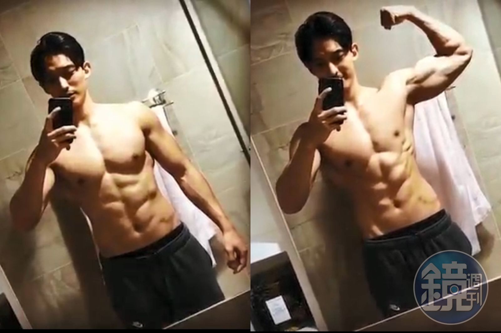 只見影片當中,王家梁僅穿黑運動褲,對著鏡子自拍肌塊,胸肌抖完後又擠二頭肌,而且一臉爽笑。許維恩則點評是「力與美的結合」。