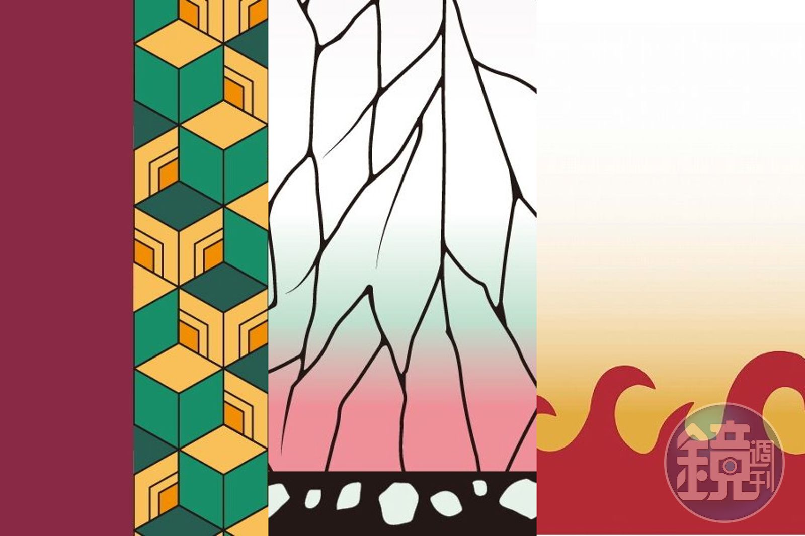 集英社申請商標包括炭治郎的黑、綠棋盤圖案,禰豆子的粉紅色麻葉圖案,我妻善逸的黃、白等邊三角圖案,富岡義勇的紫色及龜甲圖案,蝴蝶忍的蝴蝶羽毛花紋圖案,以及煉獄杏壽郎的火焰圖案。在這6個圖案中,前3款在日前出爐的審查結果中被駁回,後3款則順利過關。