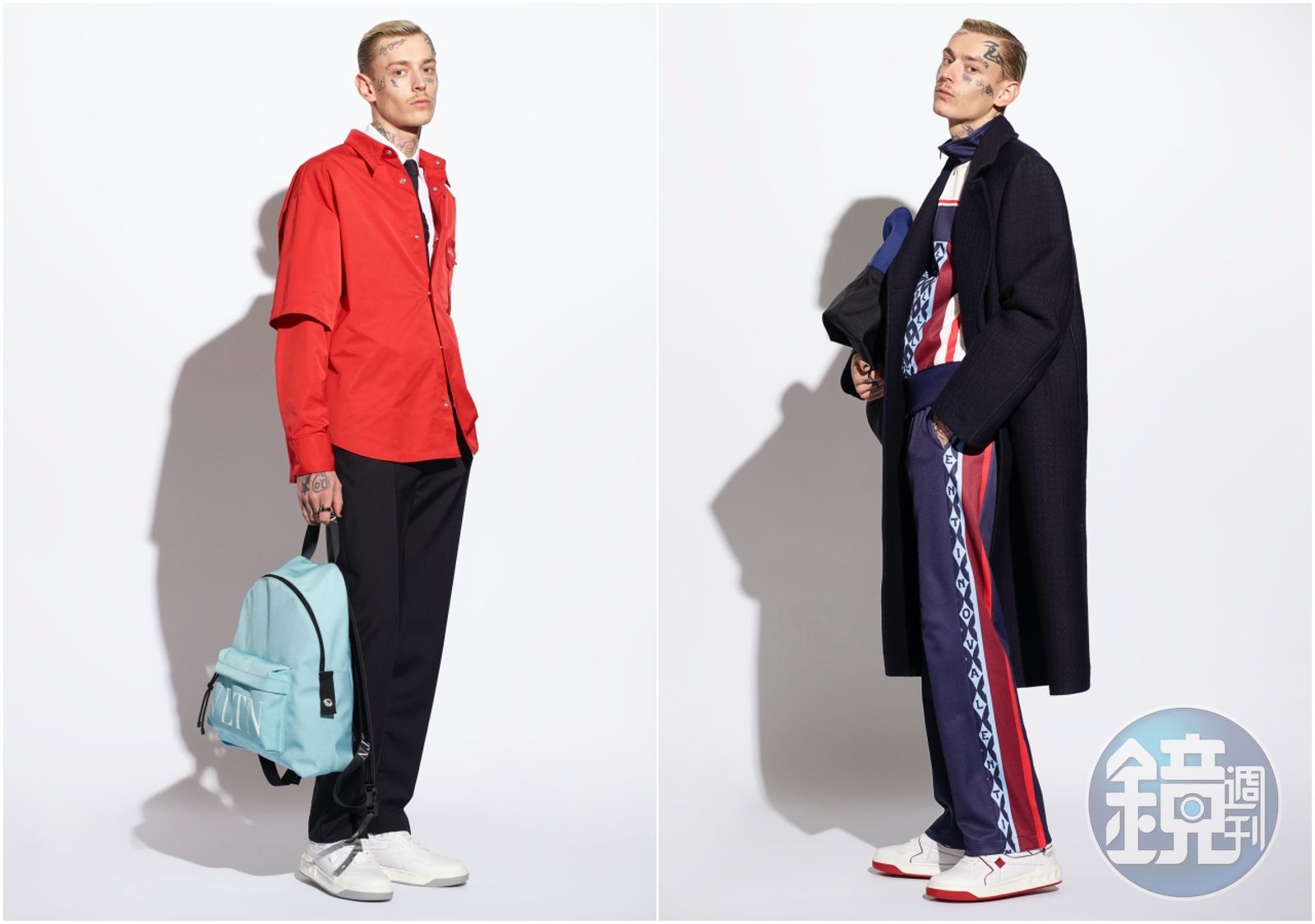 搭配單顆紅色鉚釘One Stud低筒運動鞋,NT$26,600。(VALENTINO Garavani提供) 運動鞋備有低筒和中筒2個版本,多款配色包括全白、黑白和紅白。經典的鉚釘造型亦以注模技術呈現於鞋跟和鞋底邊框上,印記腳下每一步。而配合運動鞋推出的立體廣告短片影像,以懷舊的圖像將被解構的運動鞋還原,畫面充滿動感。最後,運動鞋於鏡頭前再度合體,背景聲音重複訴說「One Stud, Only One」的信息。