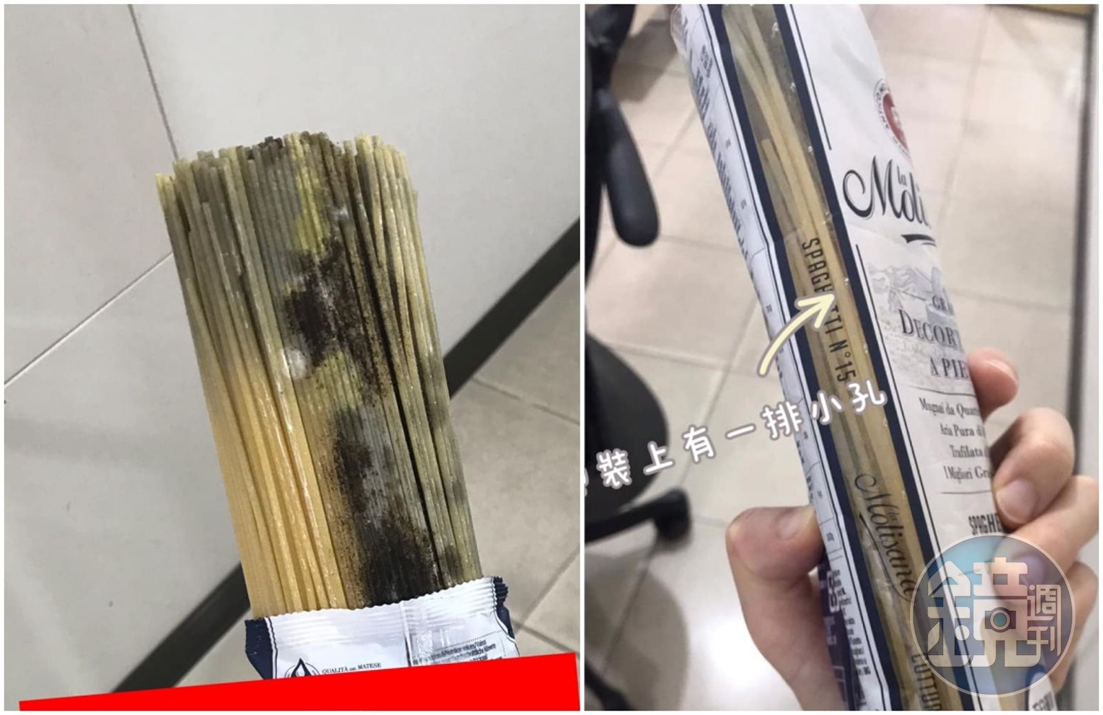 一名網友在臉書社團「我愛全聯-好物老實說」發文,表示因為疫情期間,採買後會將商品外包裝水洗清潔消毒:「給那些疫情期間有強迫症什麼都想洗一洗的朋友,義大利麵不要洗呀!不然會和我一樣沒有午餐吃。」並秀出一張生義大利麵的照片,只見麵體發黑,還有霉斑,讓原PO嚇了一跳。
