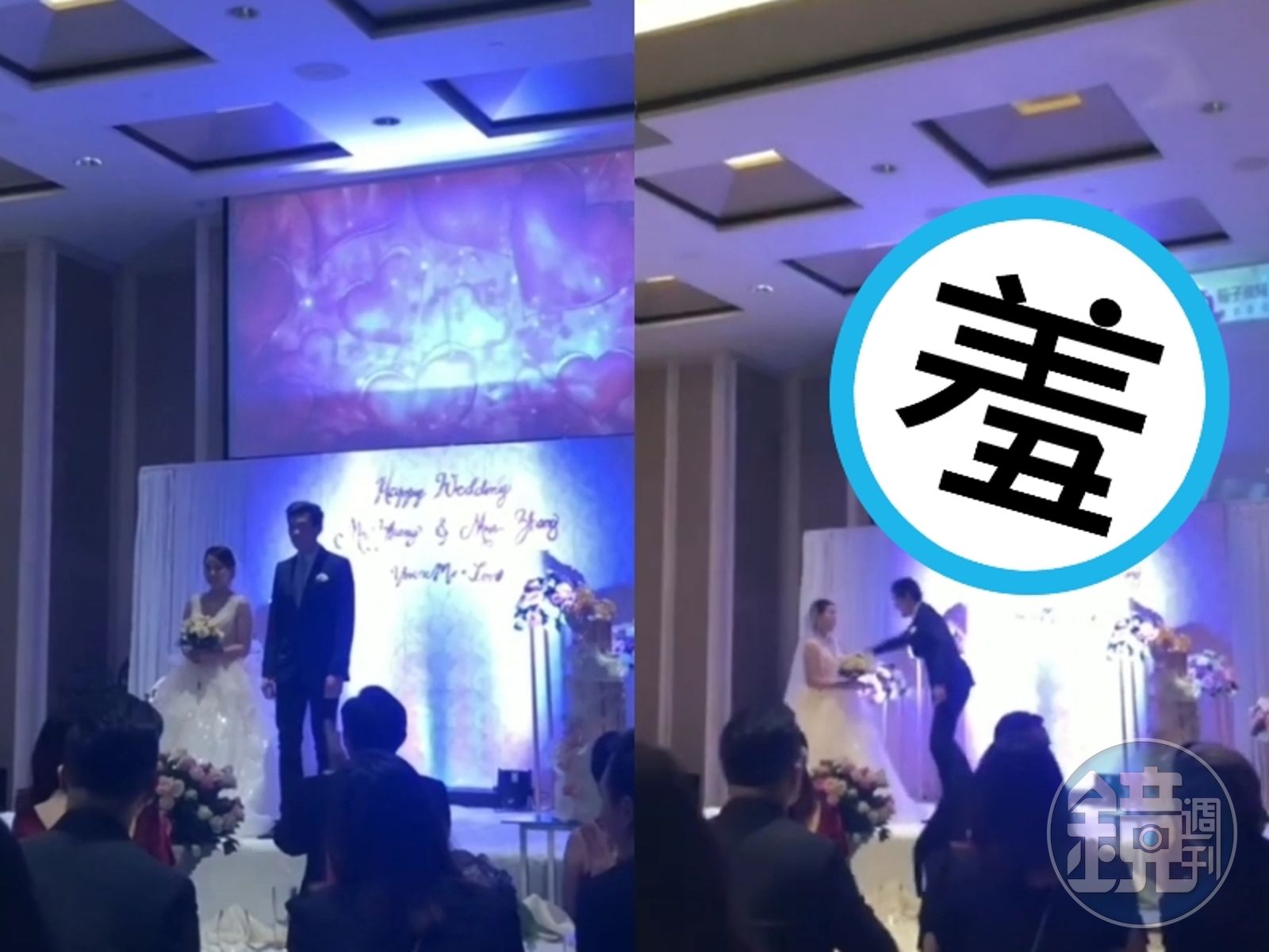 影片播放後,新郎向新娘怒吼:「妳以為我都不知道嗎!」被綠的憤怒也通通爆發出來,新娘當下不堪受辱,將手上捧花砸向新郎,2人甚至還大打出手,最後是由兩旁的賓客上前拉開阻止,場面一度尷尬。