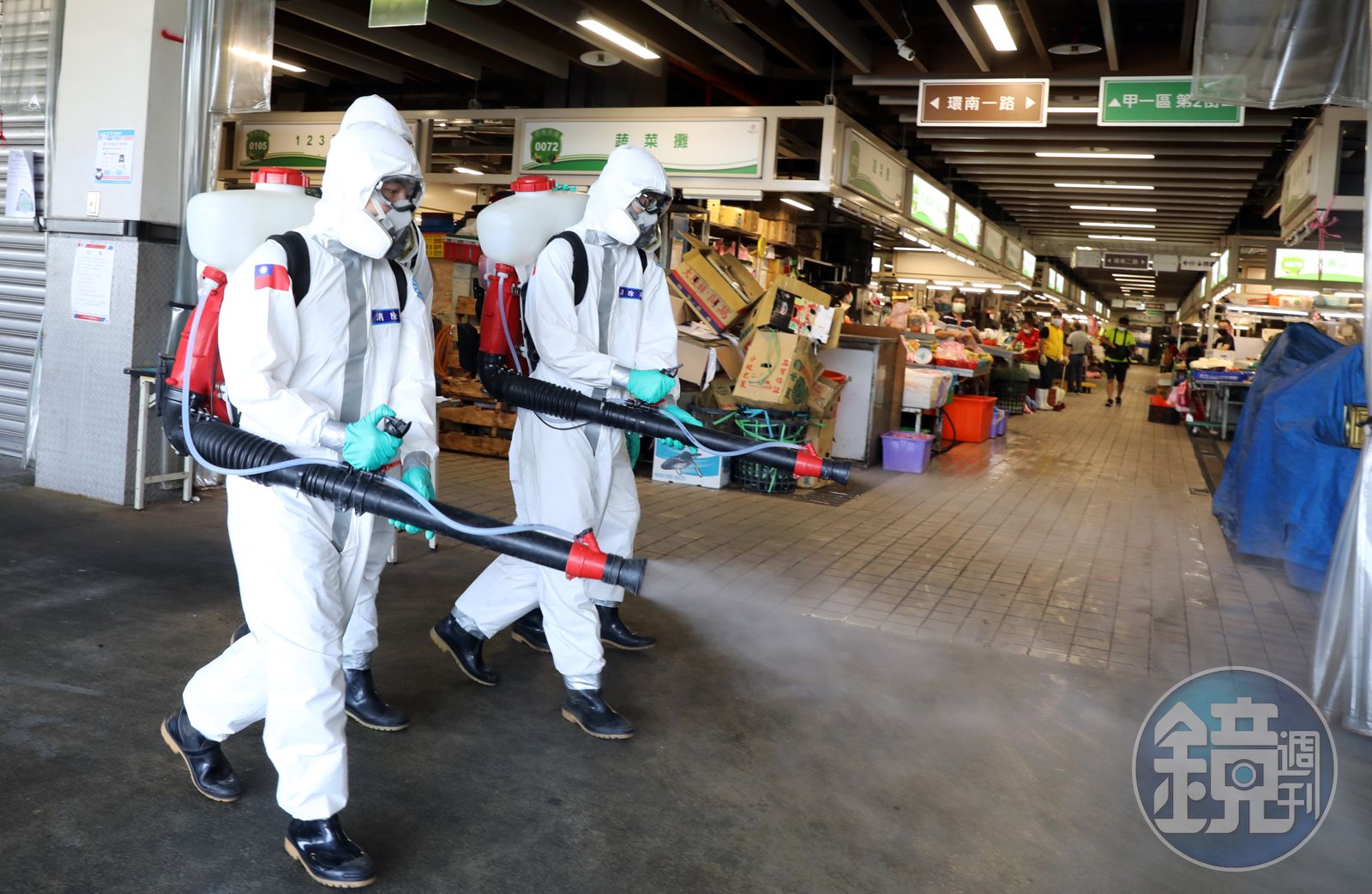 環南市場啟動緊急處理機制,在攤商送至防疫旅館後將對市場進行清消,市府也要求環南市場休市至5日。