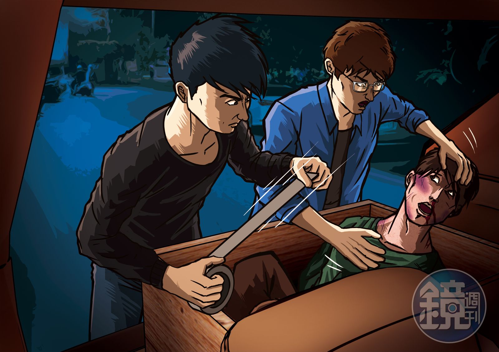 警方立刻逮捕何男等人,林與何對於劉男的死,都推給對方。何男堅稱,他打算將對方載到南投縣信義相丹大林道釋放,途中死者一直踢木箱,他要林男過去「讓他安靜點」,林男卻用膠帶封住劉男口鼻,導致他窒息而死。林男則聲稱是何用膠帶封住小王口鼻,還看著裝著屍體的木箱冷笑;殺了人之後,兩嫌乾脆將劉男載到更偏遠的山區,潑灑汽油、甲苯,焚屍之後,棄置谷底。