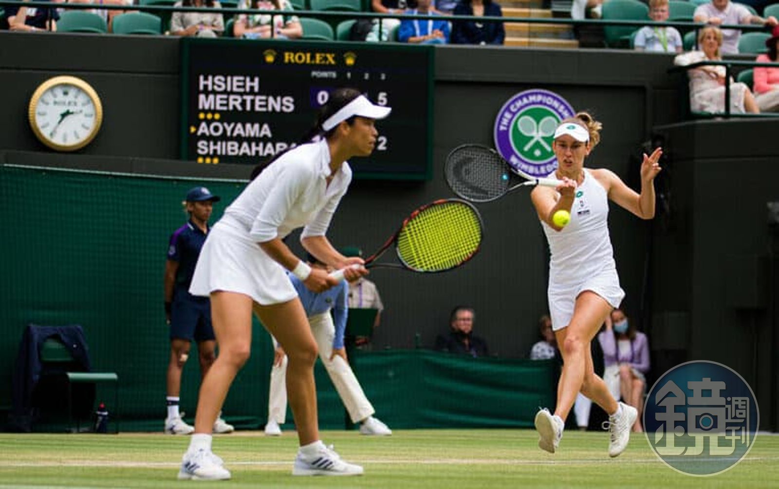名列溫網第3種子的謝淑薇、梅滕斯在四強賽擊敗日本後,決賽對決大黑馬的非種子俄羅斯組合庫德梅托娃、薇絲妮娜,開局謝、梅組合還在磨合,以3:6丟失首盤,但第二盤第10局瓦解對手2個「破發點」,從3:5落後到連趕4局,將戰局延長到決勝盤。