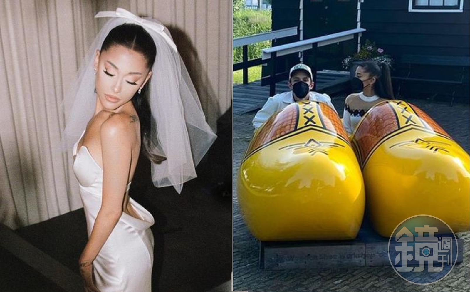 剛晉升為人妻的亞莉安娜昨(12日)在IG分享旅遊照,原來她和新婚尪達頓(Dalton Gomez)在5月的甜蜜小婚禮後,曾到荷蘭阿姆斯特丹度蜜月,2人穿著輕鬆、休閒,連拍照時都把口罩戴好戴滿,唯一一張兩人頭部都有入鏡的照片裡,小夫妻坐進一雙巨大的木鞋,亞莉安娜看老公的眼神都是糖,連放閃都很低調。
